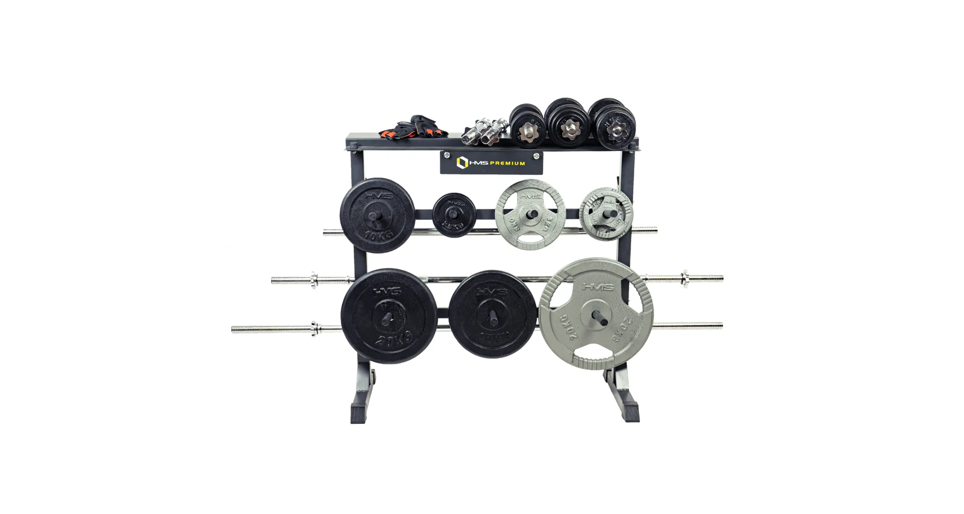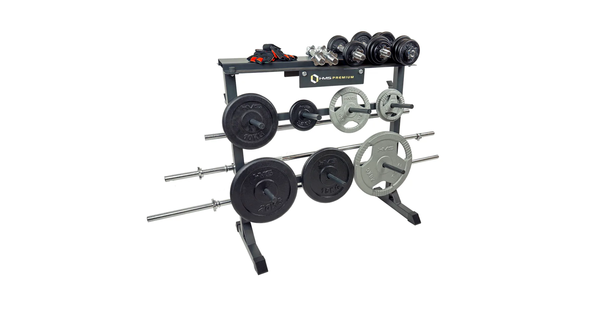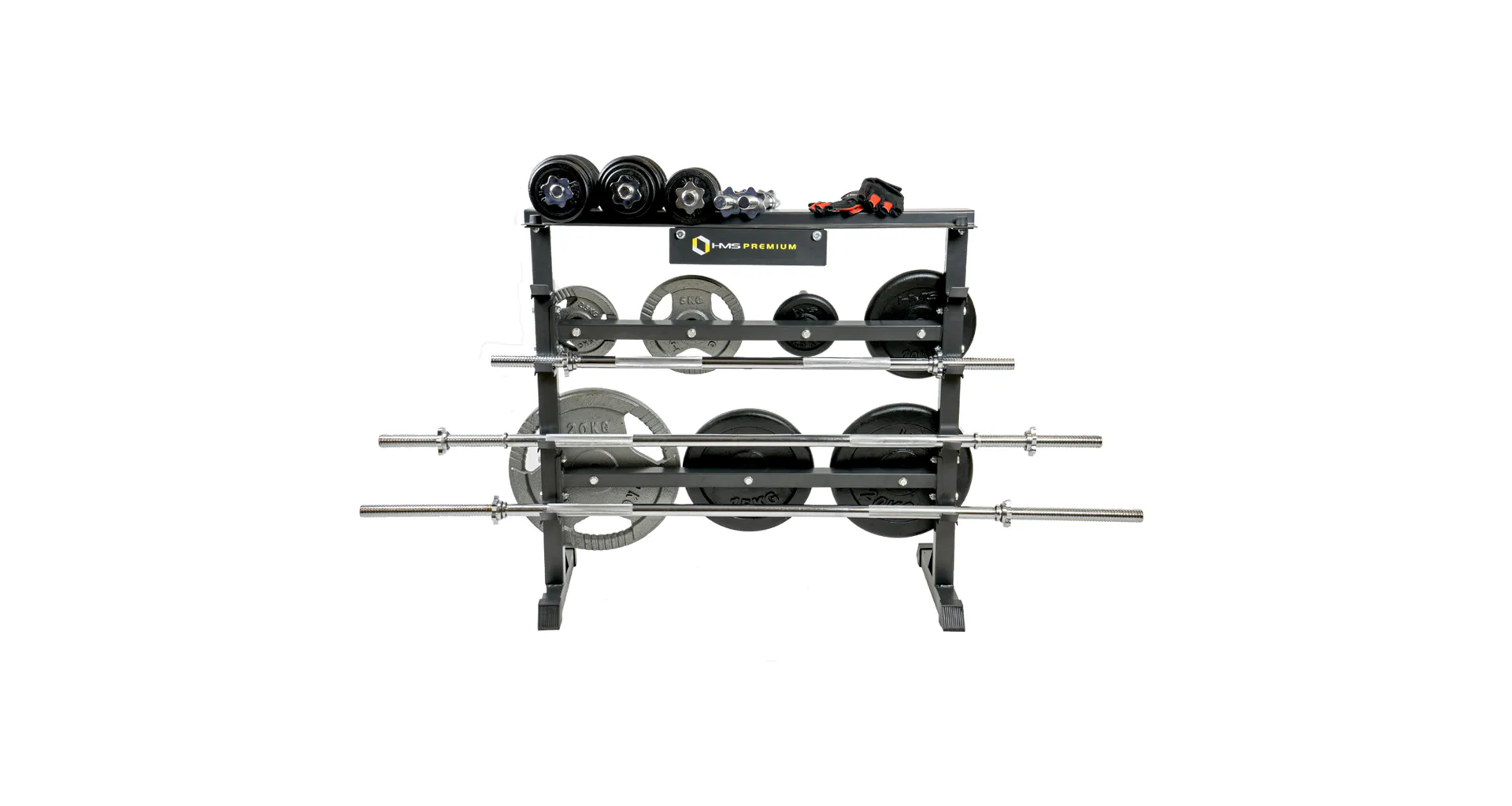 Stojan HMS Premium STR12 je navrhnutý na ukladanie kotúčov a hriadeľov. Stojan disponuje 4-mi pozíciami pre osi, 7-mimi tŕňmi pre kotúče a hornou plochou pre jednoručné činky. Odkladať naň môžete náčinie do celkovej hmotnosti 250 kg. STR12 je vyrobený s ohľadom na bezpečie užívateľov aj odkladaného náradia z kvalitných oceľových profilov.