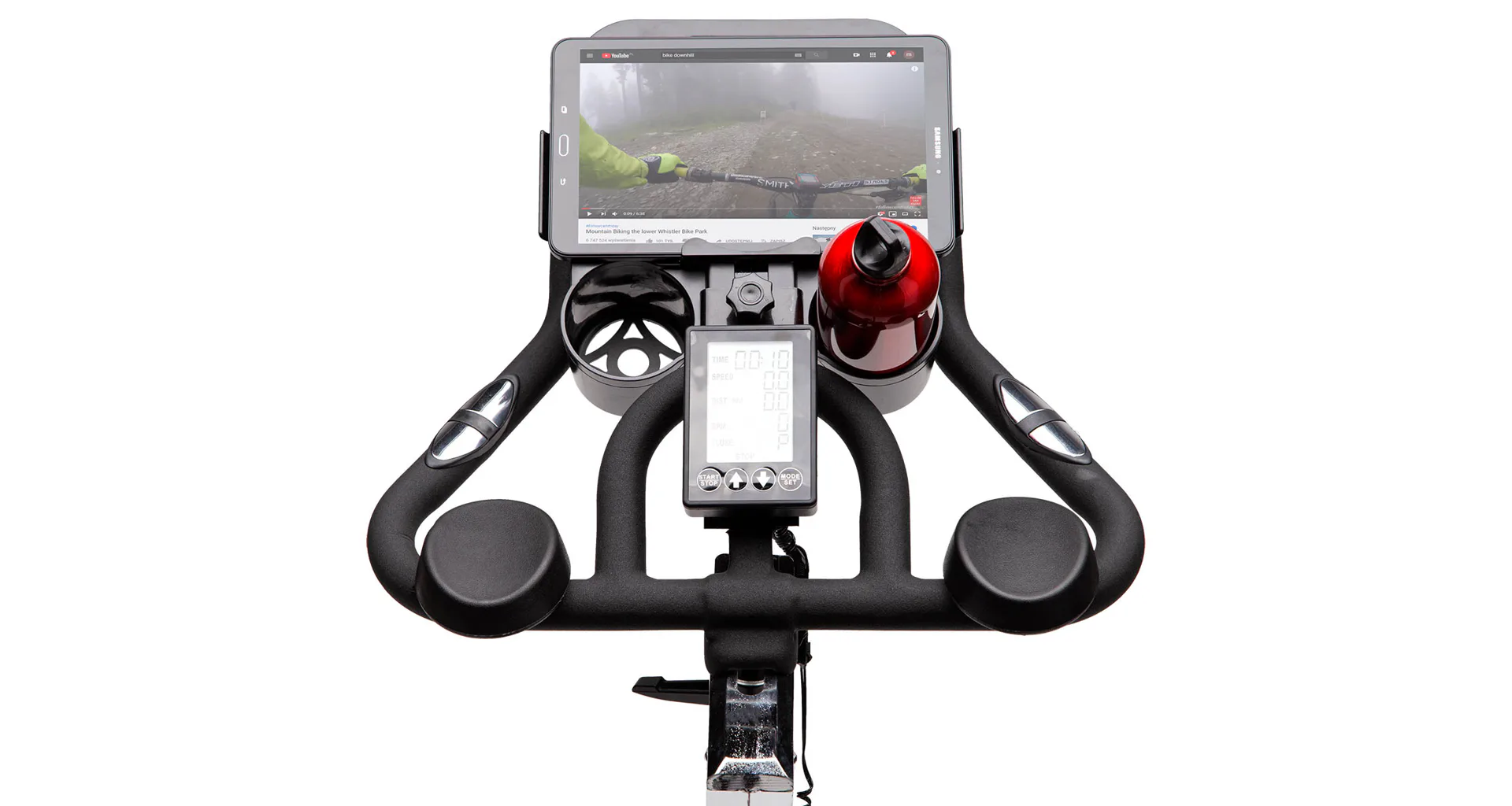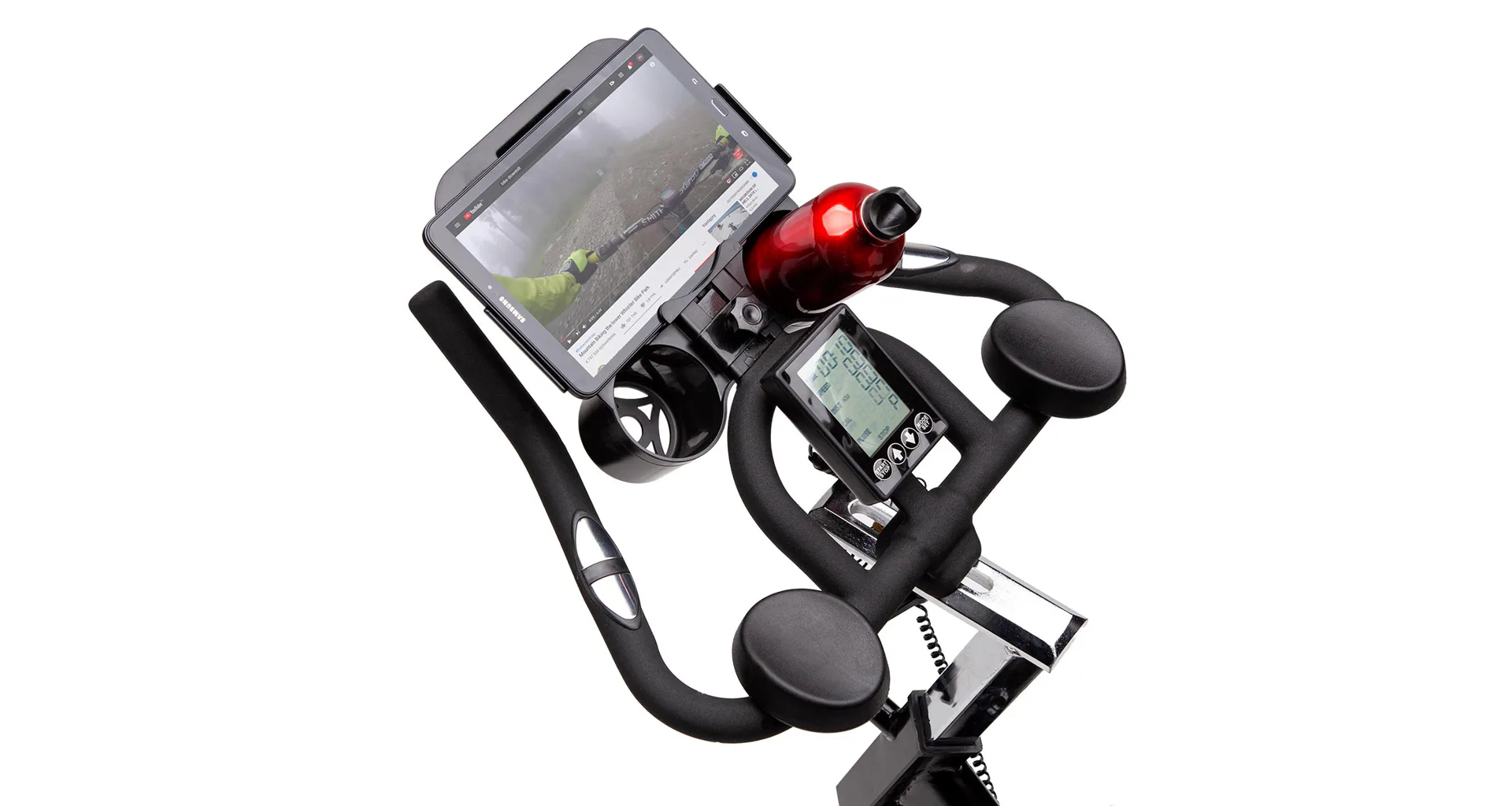 Nad počítač je možné umiestniť odnímateľný držiak mobilného zariadenia s miestom pre odloženie fľaše. Tento držiak je vyložene komfortnou vlastnosťou trenažéra SW2102 s ktorého pomocou môžete počas tréningu sledovať napríklad obľúbený seriál.