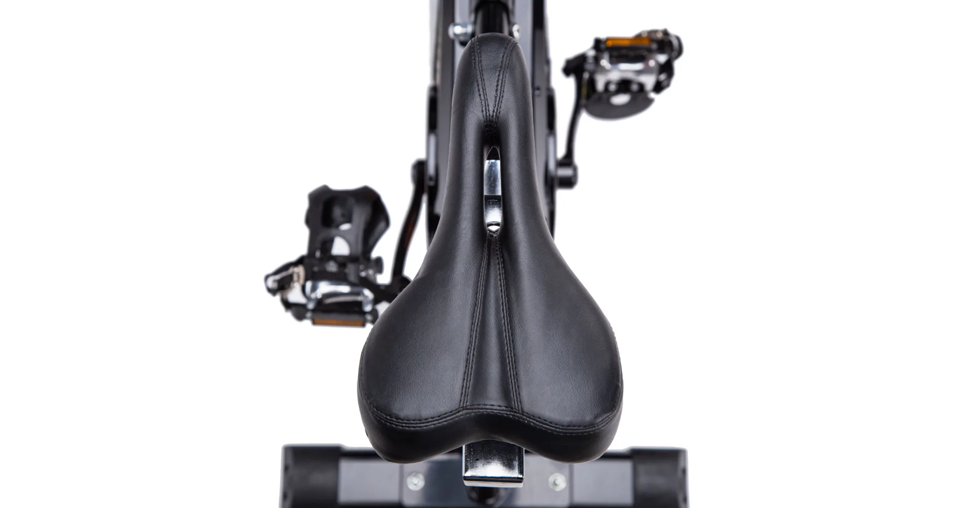 Zadné rameno, ktoré nesie sedadlo, je opatrené tlmičom, ktorý má za účel zvýšiť užívateľský komfort a oceníte ho hlavne pri vysokých rýchlostiach. Oceľové pedále sú osadené košíkmi s nastaviteľným remienkom, toto riešenie umožňuje použitie akejkoľvek topánky. Predné stabilizátor s transportnými kolieskami umožňuje jednoduché presúvanie a uskladnenie trenažéra, ak práve nie je využívaný. Obaja stabilizátory sú potom opatrené výškovo nastaviteľnými skrutkami pre vyrovnanie trenažér do roviny aj na nerovnej podlahe.
