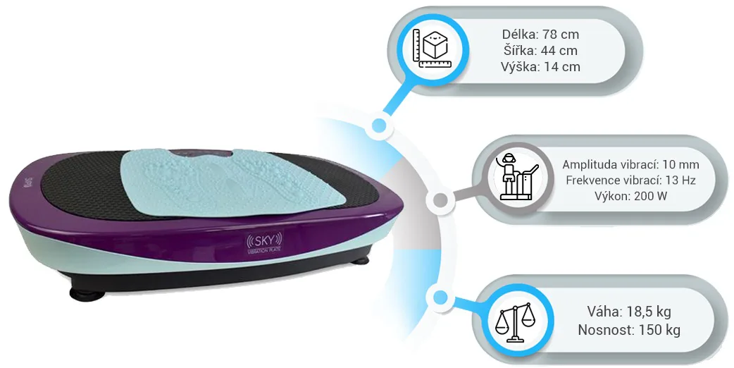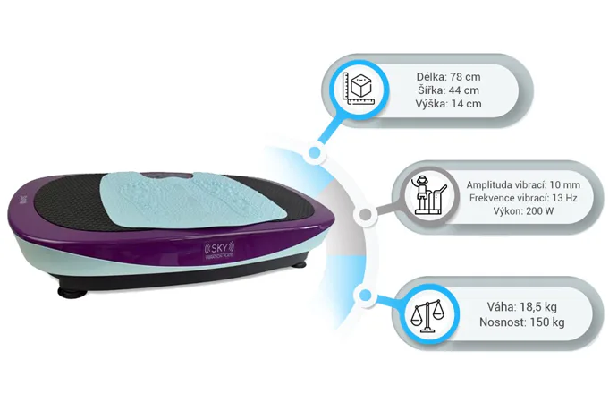 Rozměry vibrační plošiny jsou (dxšxv): 78 x 40 x 14 cm a hmotnost 18,5 kg, takže není problém ji pohodlně uložit pod postel apod., aby nezabírala zbytečný prostor.