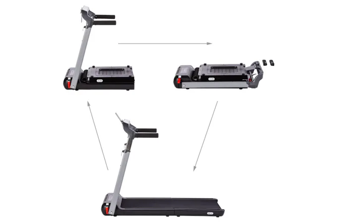 Běžecký pás jde složit a umístit jej například pod postel, nebo do skříně. Postup je jednoduchý a zabere méně, než 1 minutu.