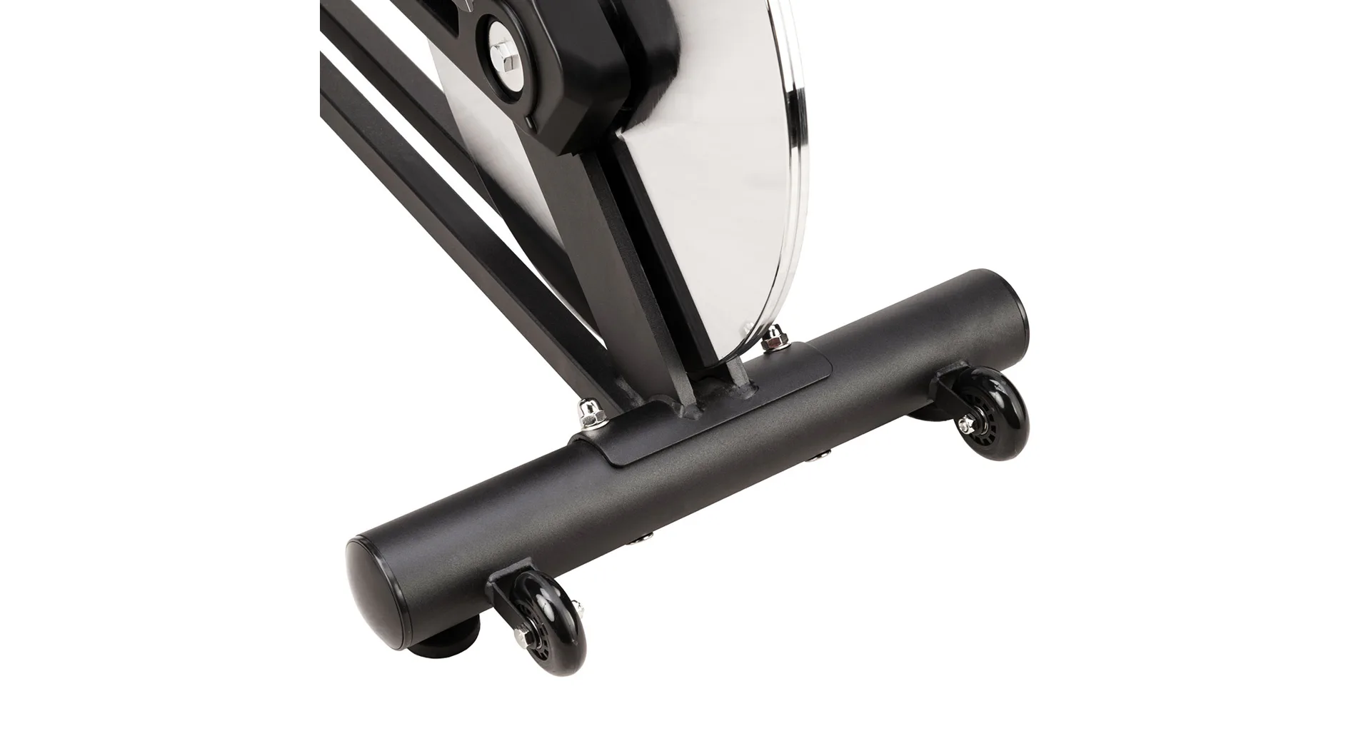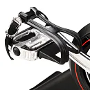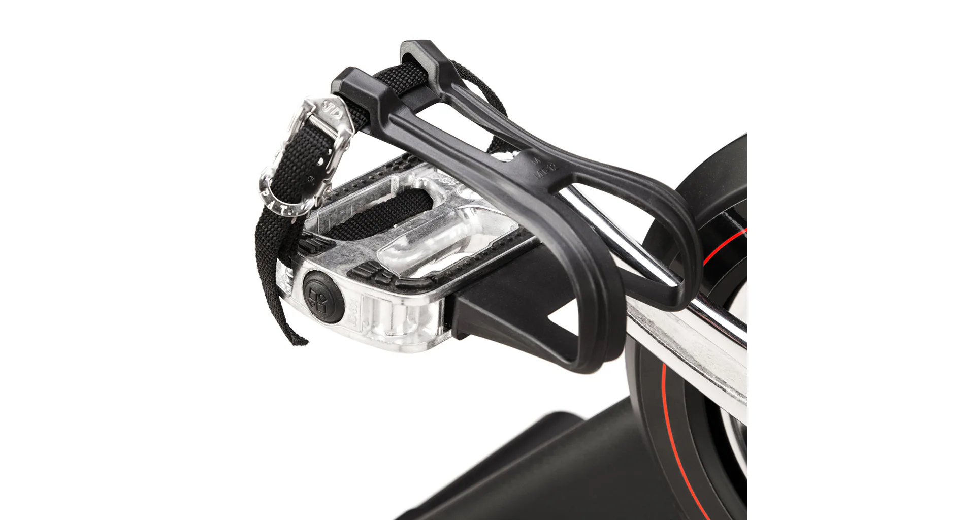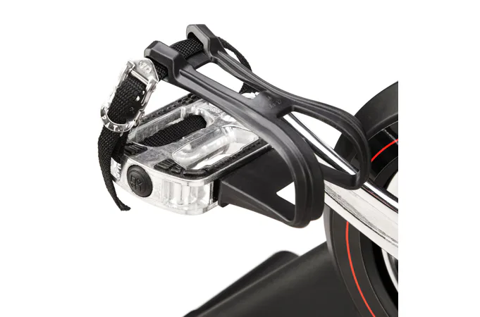 Oceľové pedále sú osadené košíky s nastaviteľným remienkom, toto riešenie umožňuje použitie akejkoľvek topánky. Predný stabilizátor s transportnými kolieskami umožňuje jednoduché presúvanie a uskladnenie trenažéra, ak práve nie je využívaný. Oba stabilizátory sú potom opatrené výškovo nastaviteľnými skrutkami pre vyrovnanie trenažéru do roviny aj na nerovnej podlahe.