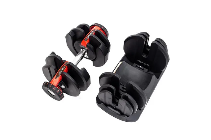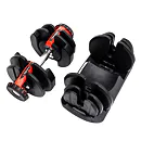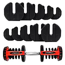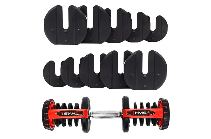 Variabilná jednoručná činka VARIO 3 až 37 kg je skvelým riešením pre tréning aj pre náročnejších užívateľov. Činky sú optimálnym riešením, jednoducho si na činke jednoduchým pootočením nastavíte s akou váhou potrebujete pracovať a môžete začať. Závažie od 2,8 do 37 kg ponúka dostatočnú variabilitu na precvičenie väčšiny cvikov. Variabilná jednoručná činka VARIO má ergonomická rukoväť a zaručuje pohodlnosť pri cvičení, bezpečný tréning zaisťuje blokovací mechanizmus. Samotná hmotnosť je možné upraviť iba v okamihu keď je činky uložená v základnom stojane, ktorý je samozrejme súčasťou balenia. Všetky váhové dosky sú potiahnuté termoplastickým materiálom, ktorý chráni Vašu podlahu pred poškriabaním, ku ktorému by počas cvičenia mohlo dôjsť. Táto ochrana tiež minimalizuje hluk, ktorý normálne vzniká pri kontakte činky s ostatnými materiálmi v miestnosti.