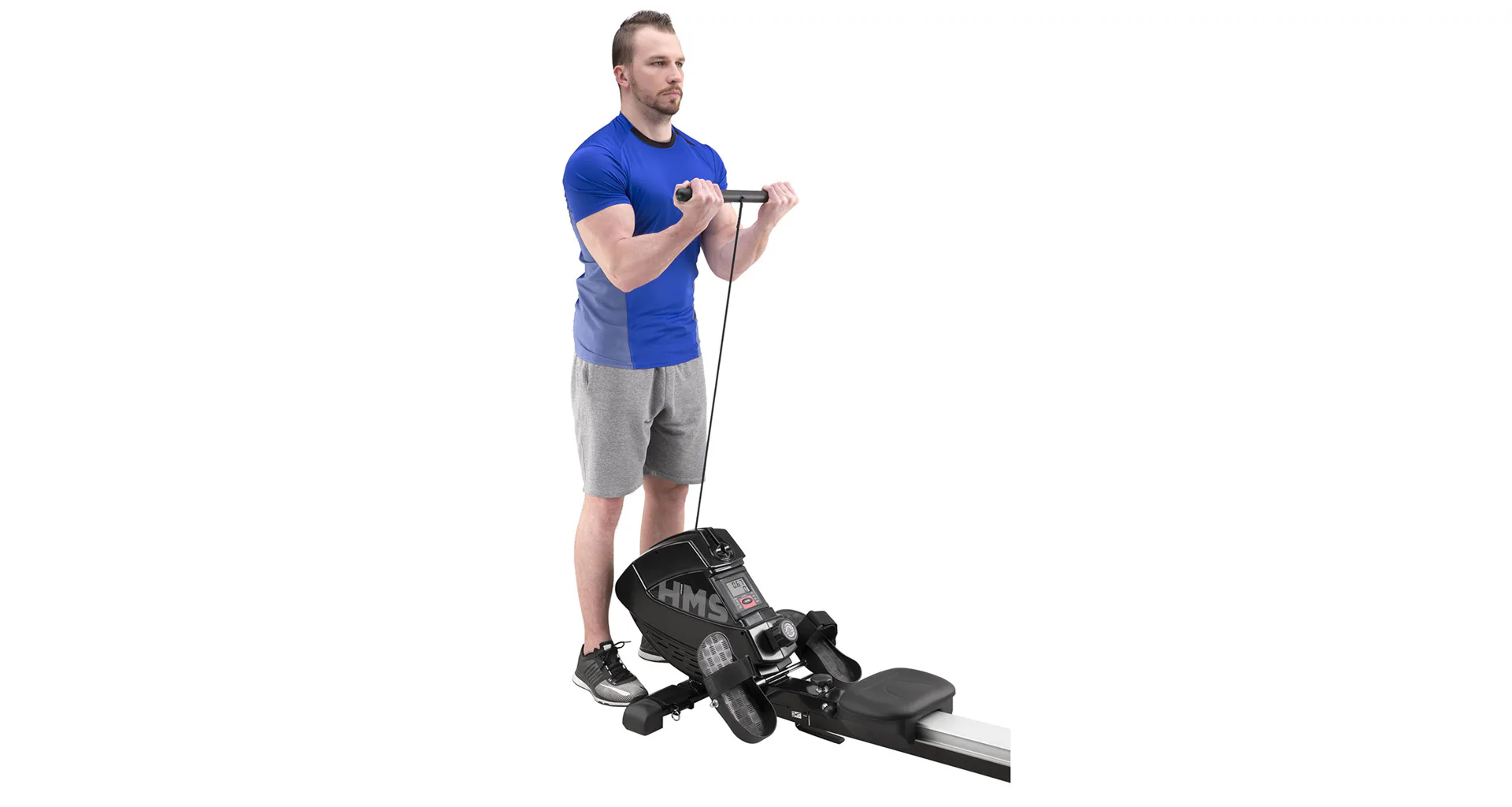 Veslovací trenažér HMS ZM1901 sa vyznačuje tichým chodom, jednoduchou obsluhou a možnosťou sklopenia koľajnice.