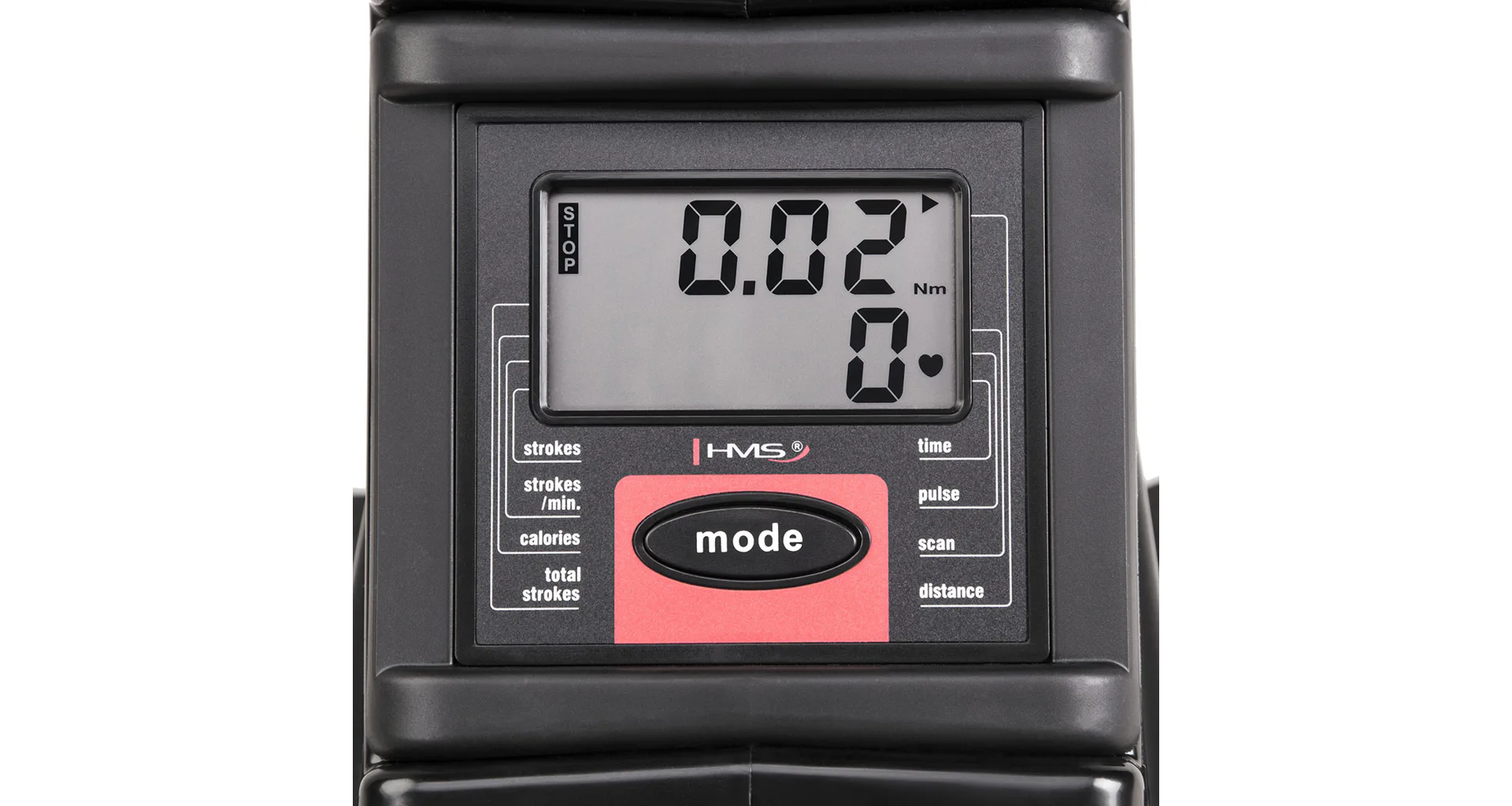 Všetky údaje pre potrebné vyhodnocovanie tréningu sa zobrazujú na LCD displeji s rozmermi 77 x 43 milimetrov. Počítatáč meria čas tréningu, vzdialenosť, počet príťahov a po pripojení telemetrického pásu (nie je súčasťou produktu) spálené kalórie a tepovú frekvenciu. Pomocou tlačidla "MODE" môžete prechádzať medzi jednotlivými údajmi alebo je možné zvoliť funkciu "Scan", ktorá v krátkych intervaloch postupne zobrazuje všetky merané hodnoty.