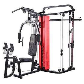 • multipress s kladkami, stojanom na činku a lavicou, legpress, hrazda