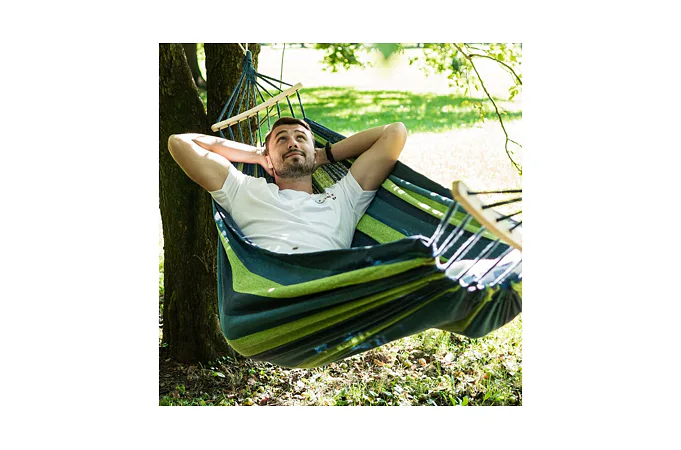Hojdacia sieť hamak Merco Comfort, je perfektný spoločník pre letné dni len tak na relax, ale aj na spánok v prírode pri zavesení medzi stromami. Je vyrobená zo 100% bavlny vrátane integrovaného prenosného vaku so sťahovacou šnúrkou.