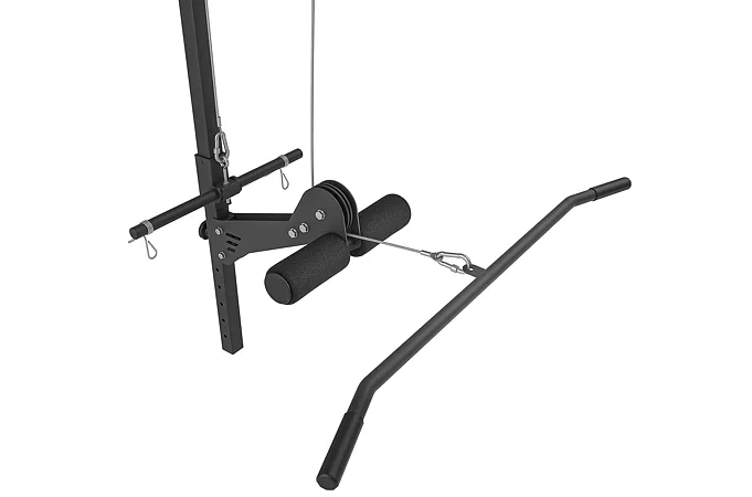 Ku každému oku je dodávaná karabína pre jednoduchú výmenu adaptéra alebo používané kladky. Prvé lanko je zakončené gumovým dorazom na ochranu rámu. Samotné lanko slúži na tréning na hornej kladke, ak chceme tréning upraviť na spodnú kladku, potom sa použije predlžovacie lanko. Samotné kladky sú plastové s hlbokou drážkou na presné vedenie lanka a osadené sú guličkovými ložiskami. Zarážky je možné výškovo nastaviť do 4 úrovní. Penové valce sú vyrobené z EVA peny pre maximálne pohodlie.