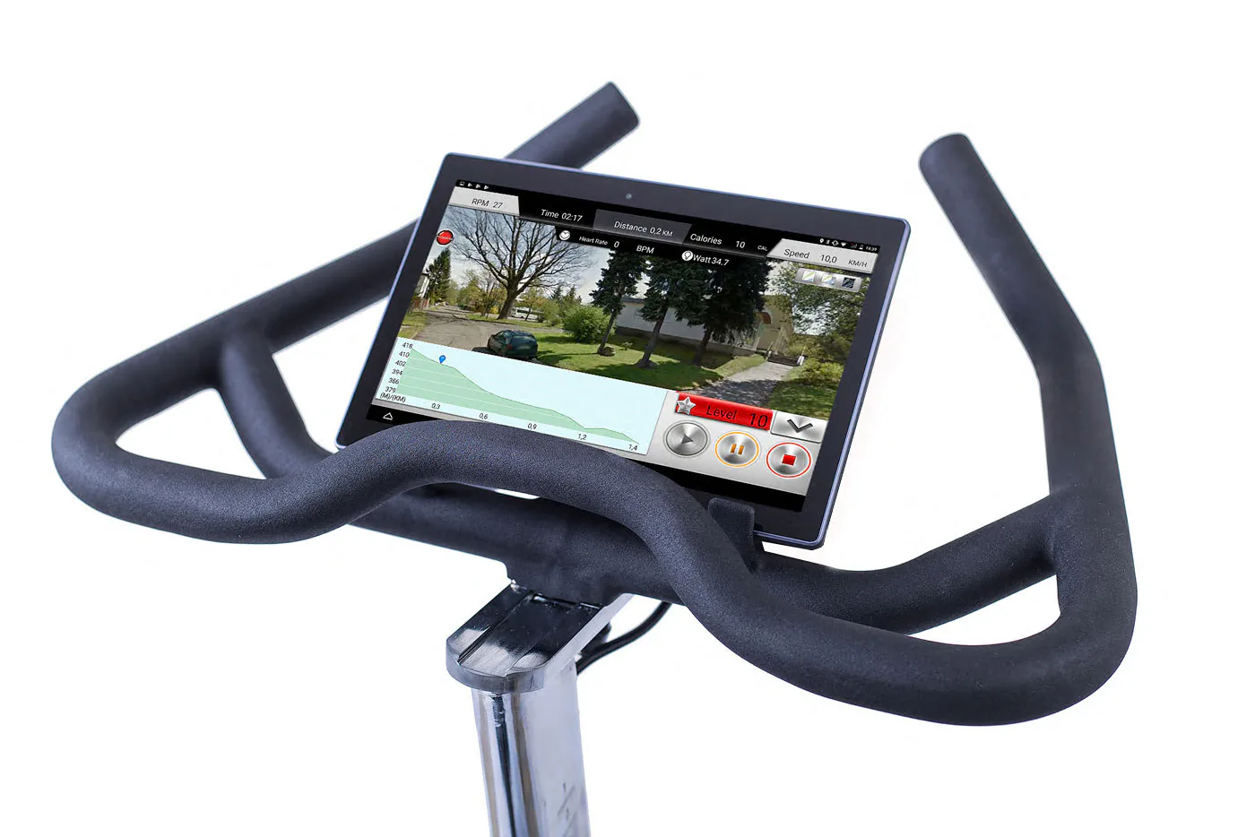 Cyklotrenažér čínské značky HOUSEFIT RACER 70 iTrain simuluje klasické silniční kolo s možností šlapání i "vestoje". Magnetická brzda (volitelný odpor ve stupních 1-32) zaručuje spolu s převodem plochým drážkovaným řemenem tichý chod trenažéru. Stálý převod bez volnoběhu zaručuje dokonalý přenos zátěže na pedály.