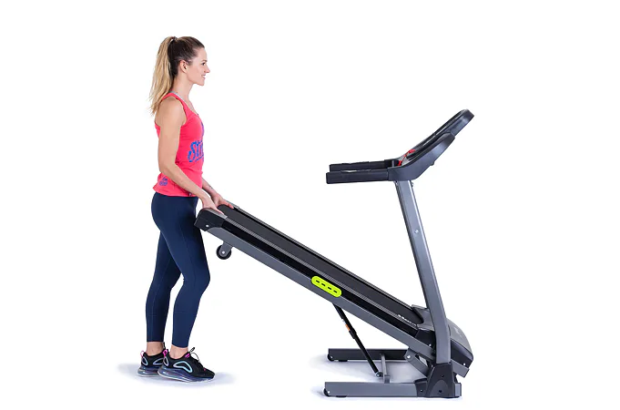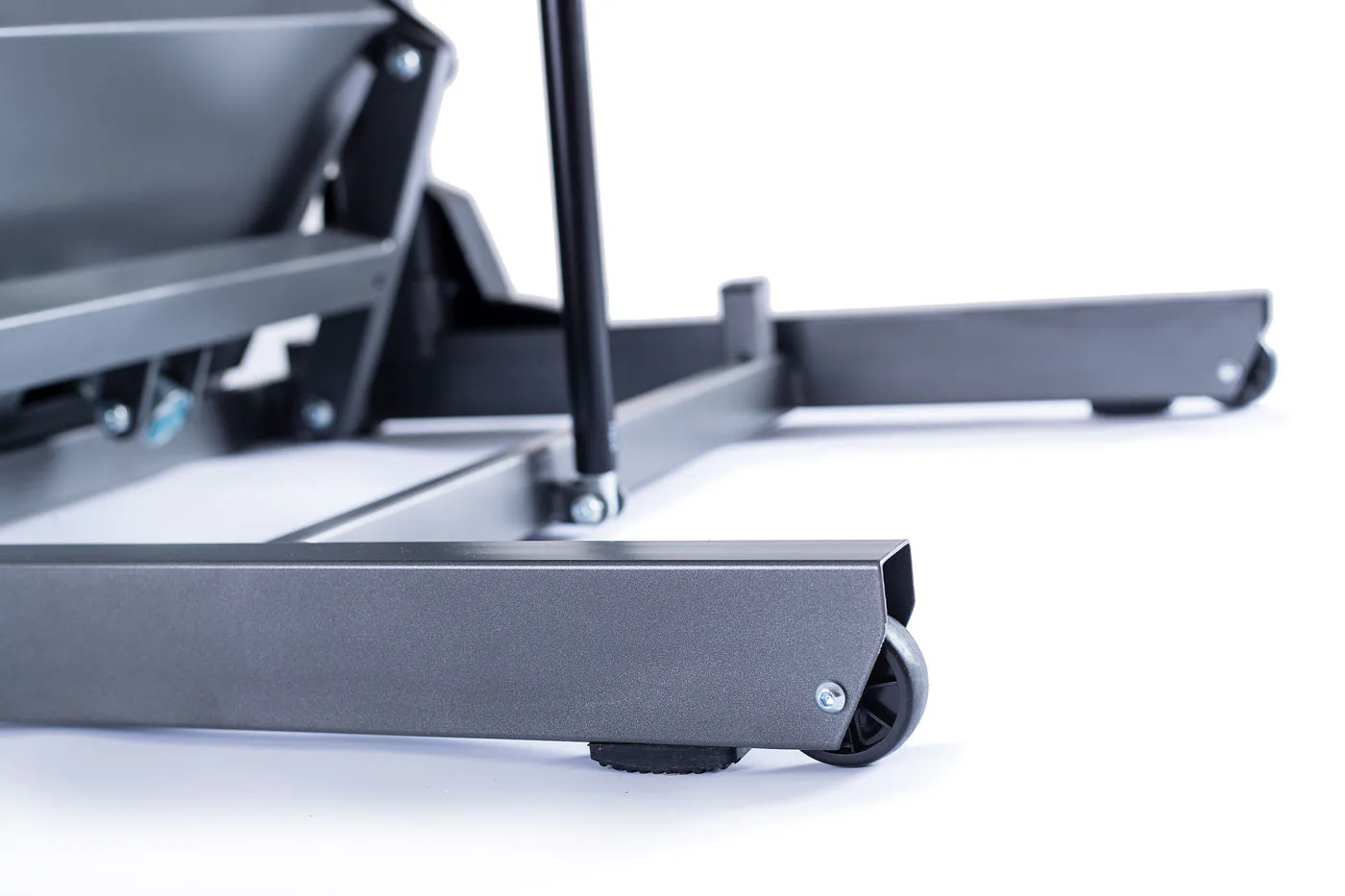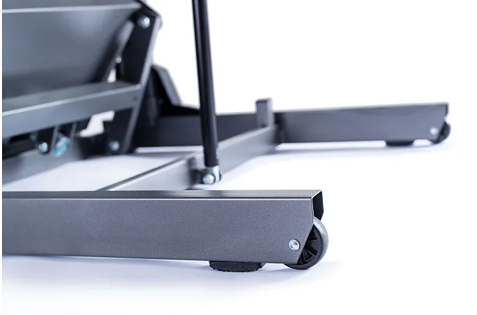 Integrovaná kolečka v přední části stroje a možnost složení vám usnadní manipulaci a můžete tak pás přemístit, kam budete potřebovat.
