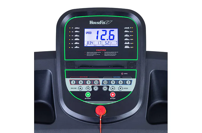 Běžecký pás HouseFit Tempo 30 disponuje přehledným LCD displejem, který vyobrazuje všechny základní údaje jako jsou čas, rychlost, vzdálenost, spálené kalorie a tepovou frekvenci.