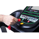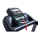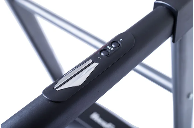 V madlech jsou integrovaná madla s dlaňovými snímači tepové frekvence a ovládání rychlosti a sklonu.