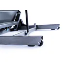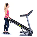 Vaše klouby při běhání budou v bezpečí díky speciálnímu rámovému odpružení prostřednictvím gumových silentbloků a pro snadnou manipulaci s pásem je možné pás složit do vertikální polohy a přemístit díky transportním kolečkům.