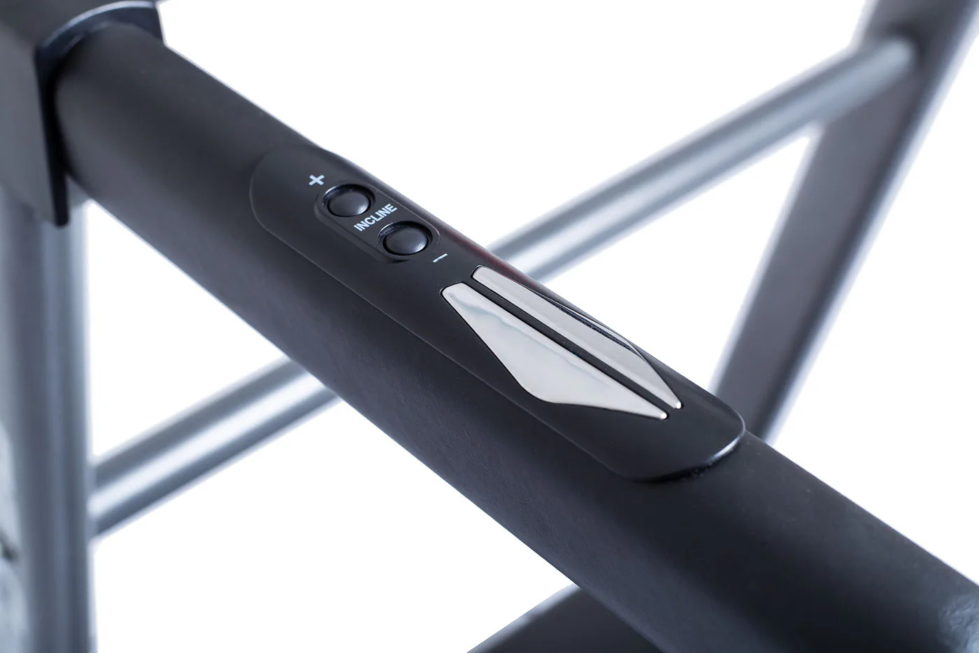 Trenažér HouseFit Tempo 30 nabízí elektronicky nastavitelný sklon do 15% manuálně přes tlačítka, či prostřednictvím programové nabídky.