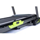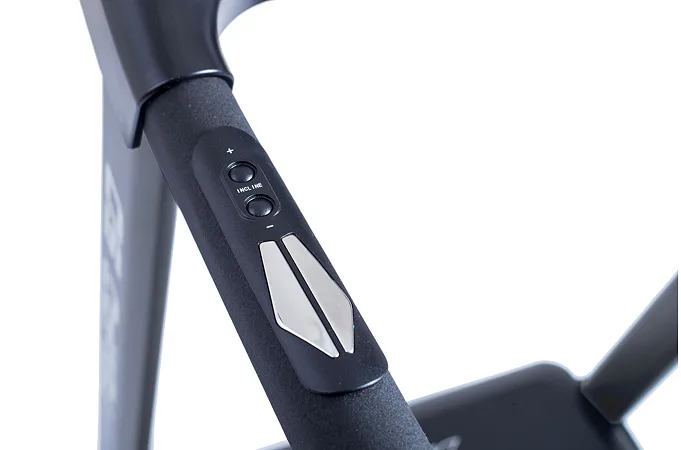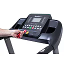 V madlech jsou integrovaná madla s dlaňovými snímači tepové frekvence a ovládání rychlost a sklonu.