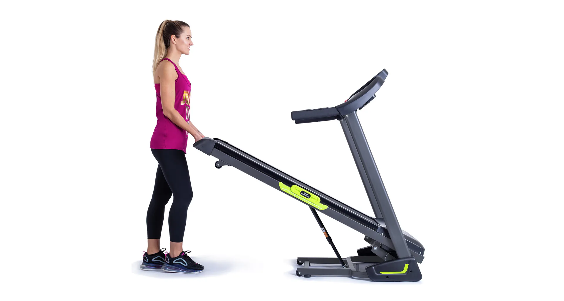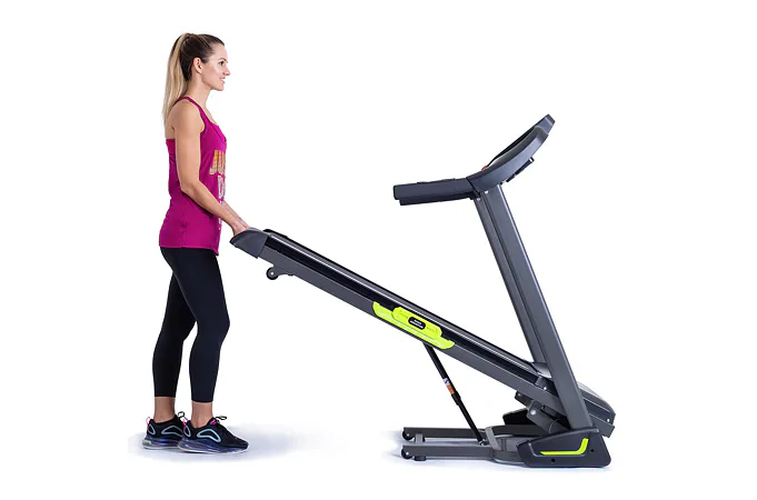 Integrovaná kolečka v přední části stroje a možnost složení vám usnadní manipulaci a můžete tak pás přemístit, kam budete potřebovat.