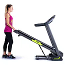 Vaše klouby při běhání budou v bezpečí díky odpružení prostřednictvím gumových silantbloků, pro snadnou manipulaci s pásem je možné pás složit do vertikální polohy a přemístit díky transportním kolečkům.