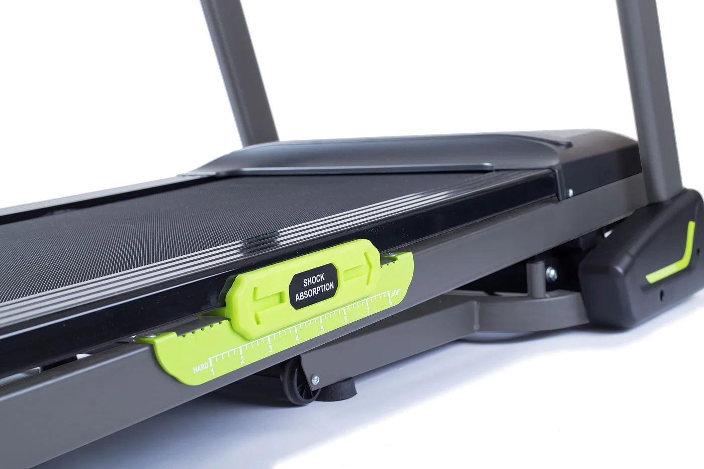 Běžecká plocha nabízí rozměry 45 x 125 cm a má odpružení prostřednictvím gumových silantbloků pro maximální bezpečí a šetrnost k Vašim kloubům při běhání.