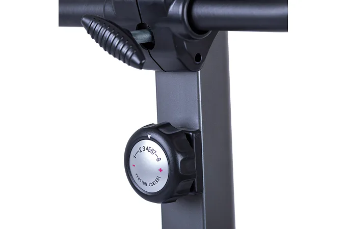 Trenažer disponuje 9 kg těžkým vyváženým setrvačníkem, moderní magnetickou brzdou, ovládanou manuálním otočným regulátorem v rozsahu 1-8 a převodem dopínaným řemenem což zaručuje komfortní, plynulý a zcela tichý chod i při větších zátěžích.