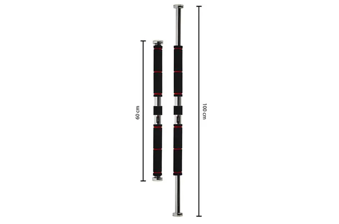 Hrazda do dverí vyrobená z ocele s lesklým chrómovým povrchom. Jednoduchá montáž a vďaka robustným držiakom so závitom aj veľmi bezpečná. Rukoväte sú vyrobené z mäkkej peny. Súprava obsahuje ďalšie dve podložky a dve skrutky. Veľký rozsah hrazdy dopomáha tomu, že je vhodná do akéhokoľvek typu dverí. Cvičenie na hrazde je veľmi univerzálne, vďaka zapojeniu mnohých svalových skupín. Najmä sú zapojené chrbát, svaly paží, ramien a brušné svalstvo.