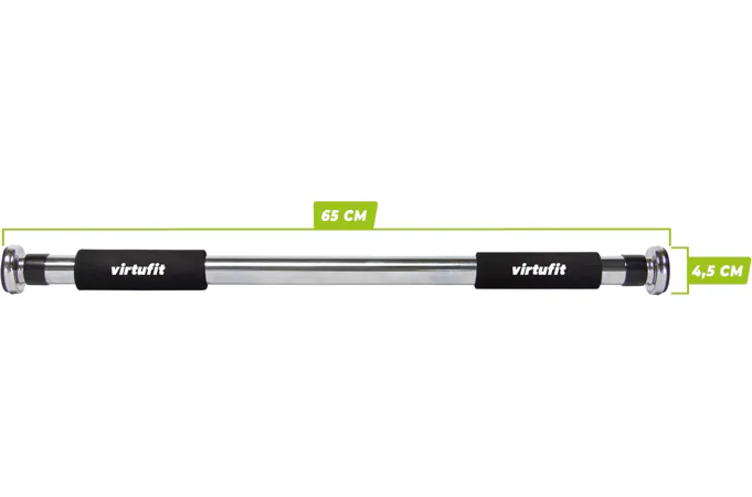 Hrazda do dverí VIRTUFIT Pull Up Bar je robustná oceľová tyč s chrómovanou úpravou, ktorá bráni korózii. Hrazda je dodávaná so 6 skrutkami pre ešte pevnejšie upevnenie. Penové rukoväte poskytujú počas cvičenia extra komfort. Montáž hrazdy do dverného rámu alebo medzi dve steny trvá iba niekoľko minút, takže môžete začať so silovým tréningom v čo najkratšom čase.