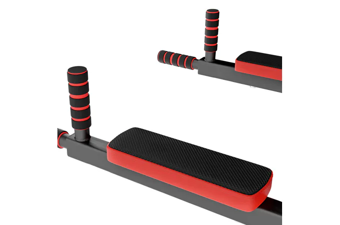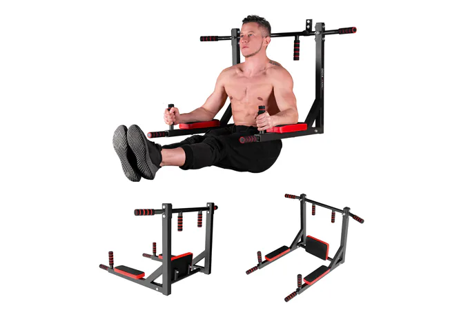 Pokiaľ teda do hákov zavesíme os hrazdy, potom budú v pracovnej polohe bradlá, na ktorých môžeme trénovať príťahy nôh k bruchu, predkopávaniu, dipy a podobne. Bradlá majú pohodlnú chrbtovú opierku a 2 opierky na lakte.