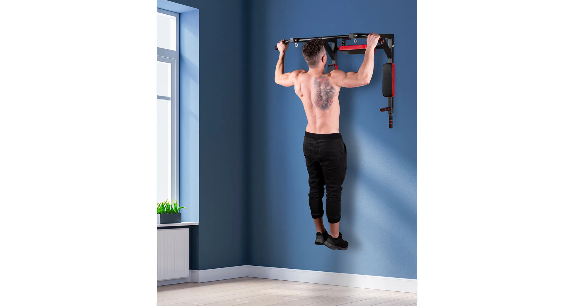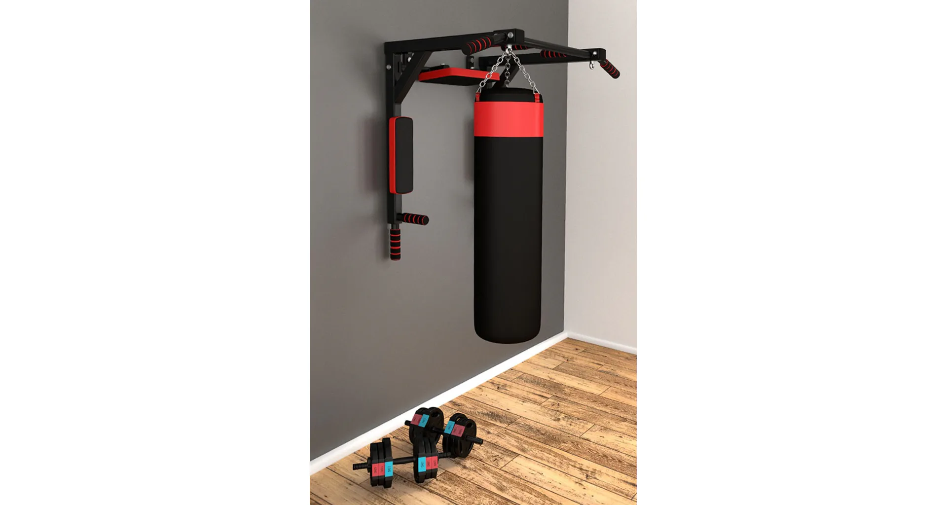 Pokiaľ do hákov zavesíme os chrbtovej opierky, potom bude v pracovnej polohe hrazda pre tréning príťahov. Hrazda má 2 páry úchopov vo vzdialenosti 30 a 99 centimetrov. Hrazda je ďalej vybavená okami pre zavesenie boxovacieho vreca, závesného systému, alebo napríklad expandérov s karabínou.