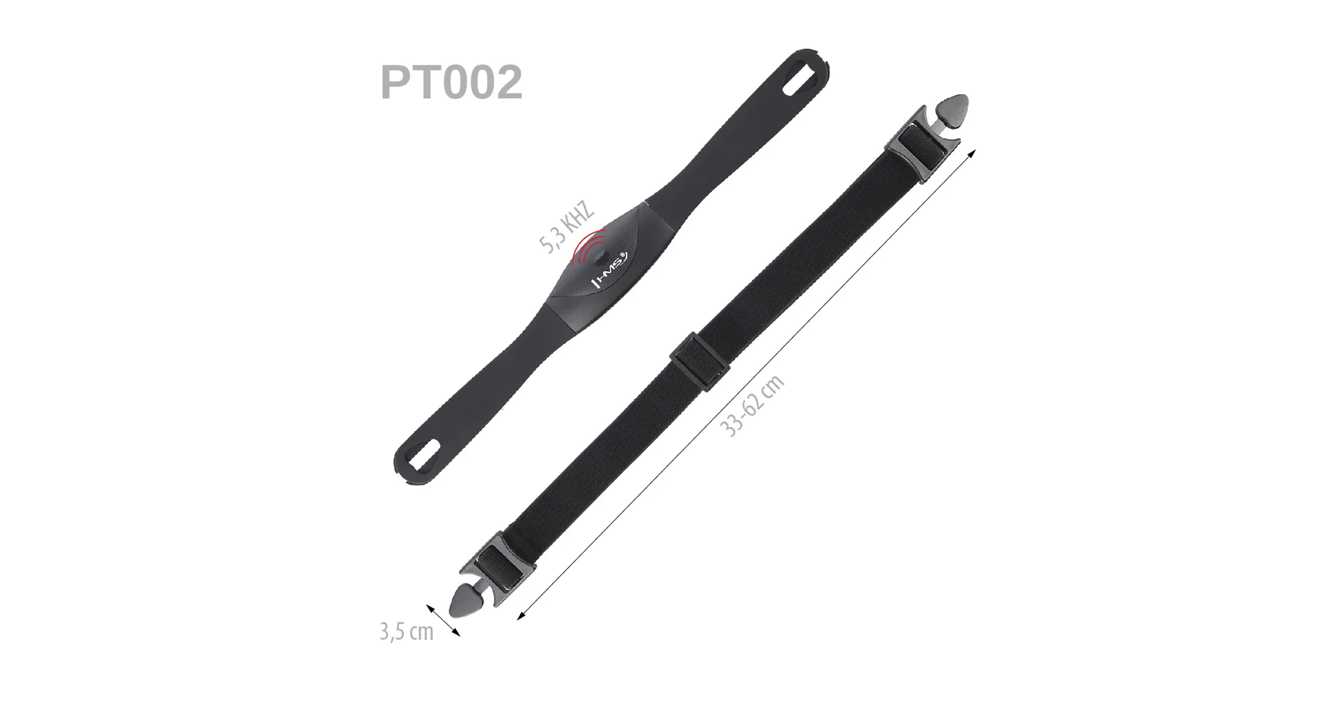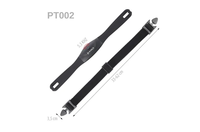 PT002 využíva nekódovaný prenos na frekvencii 5,3 kHz a je teda určený na použitie s trenažérmi v domácom prostredí.