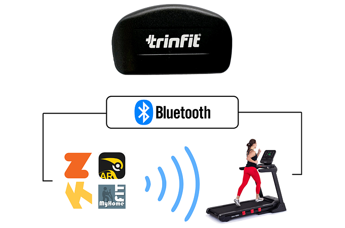 Pás je kompatibilní jak s moderními fitness trenažéry využívajících Bluetooth přenos, tak s mobilními telefony a aplikacemi.