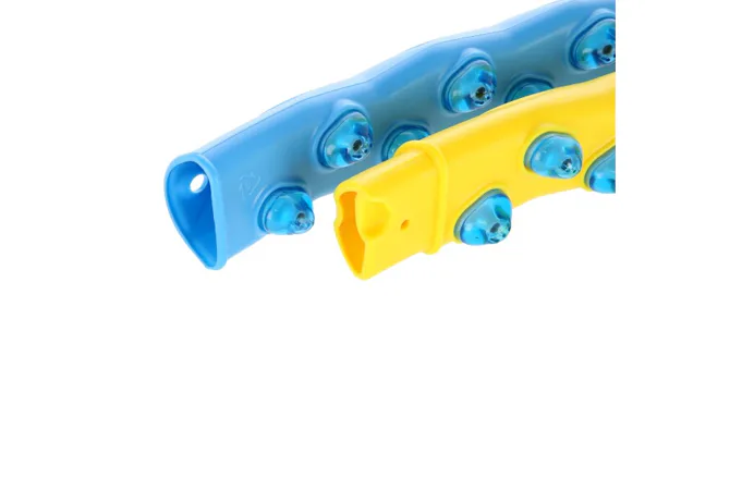 Obruč hula hop HMS HHP022 je ideálny nástroj pre zníženie hmotnosti a tvarovanie siluety. Model HHP022 je po vnútornom obvode vybavený masážnymi výstupkami s magnetmi, ktoré podporujú spaľovanie tukového tkaniva v oblasti brucha, bedier a zadku. Pravidelným tréningom s obručou HHP dosiahneme zmenšenie obvodu pásu, zníženie hmotnosti a zlepšenie fyzickej kondície. Obruč je dodávaná v rozloženom stave na 8 častí a jej montáž Vám zaberie menej, ako minútu času.