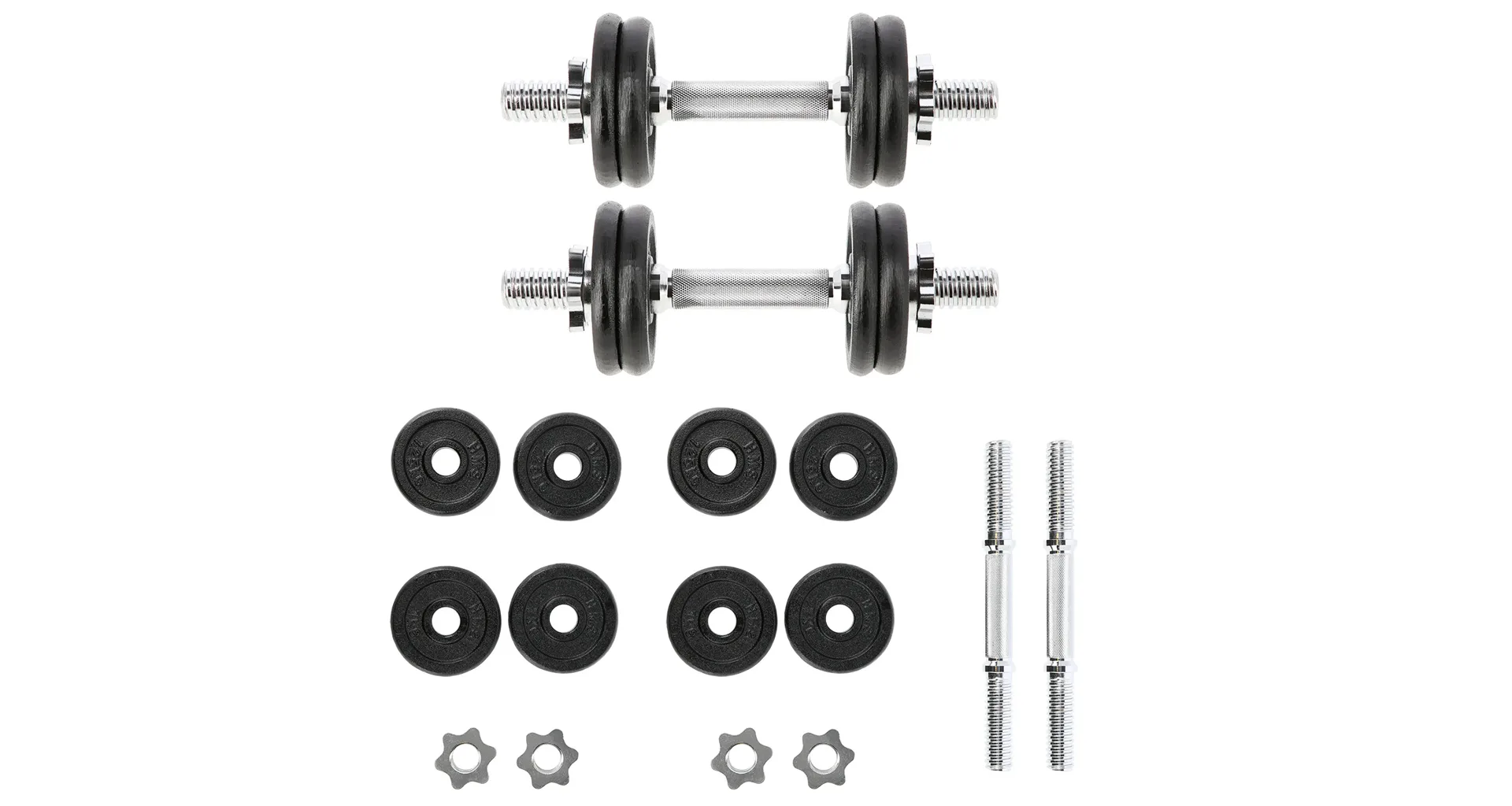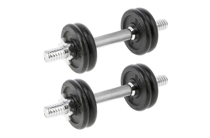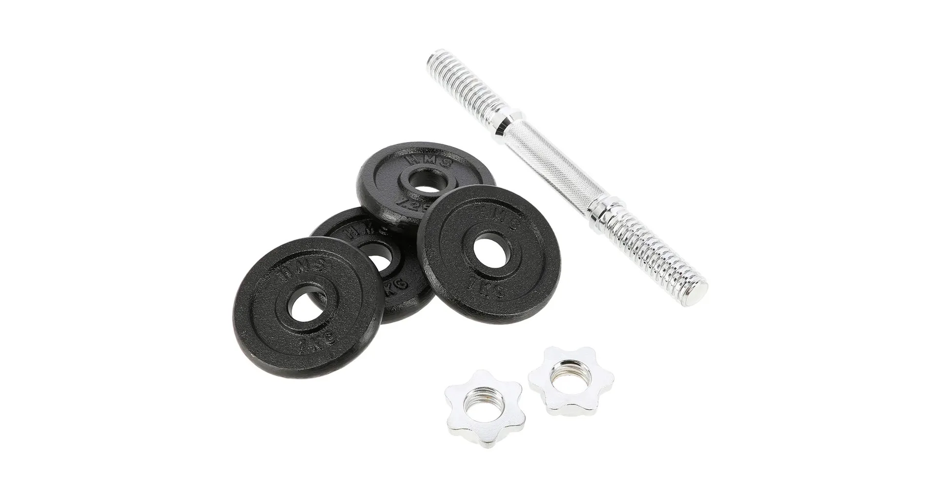 SG02 označuje sadu 2 jednoručných, nakladacích činiek od značky HMS, čo je klasika a zároveň nevyhnutnosť každej domácej posilňovne. Sada obsahuje: 2x rovnú os, 4 závažia 1 kg, 4 závažia 1,25 kg a 4 hviezdicové uzávery. Prvý z týchto prvkov je vyrobený z niklovanej ocele. Závažia sú liatinové. Os zdobí vrúbkovaná rukoväť, vďaka ktorej sa nešmýka počas cvičenia. Závitové jednoručky v kombinácii so svorkami zaručujú rovnomerné upnutie závažia. Produkt je vhodný ako pre pokročilých, tak aj začiatočníkov. Začni sa už dnes starať o svoju kondíciu s profesionálnymi jednoručkami s celkovou hmotnosťou 14 kg. Je to ideálna voľba pre tréning doma aj v posilňovni.