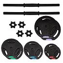 Súprava obsahuje 2 jednoručné hriadele, 4 hviezdicové matice a celkom 16 kotúčov rôznych váh.