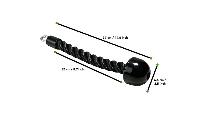 Jednoručný lanový adaptér na triceps TUNTURI je ideálnym doplnkom pre tréning tricepsov, bicepsov, chrbta a ramien. Lano je vyrobené z odolného nylonu, vďaka ktorému je pružné, pevné a bezpečné na tréning. Na konci je vybavené gumovou koncovkou, ktorá umožní pohodlný úchop. Ide o základný prvok využívaný na kulturistické cviky.