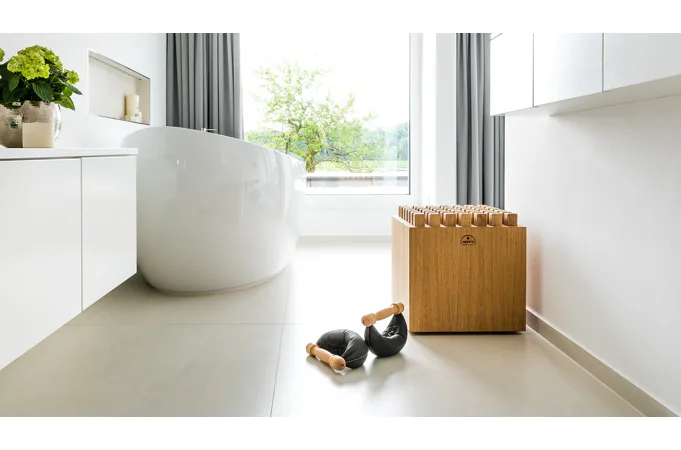 Stolička je nejen designovým poutačem v místosti, ale má i svou funkční stránku. Odpružené dřevěné bloky vám umožní skutečně egonomickou polohu v sedě.