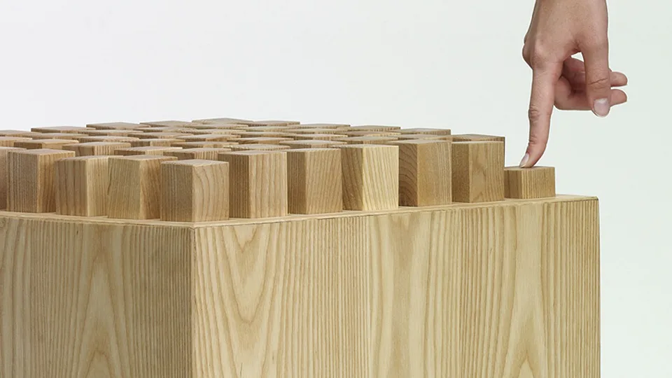 Exkluzivní stolička na sezení HedgeHock od německé značky NOHrD s výrazným designem, který ozvláštní každý interiér ať už vašeho bytu, kanceláře, hotelu, čekárny nebo jákekoliv jiné místo. Stolička je vyrobena z masivního dřeva různých druhů s rozměry 45 x 45 x 45 cm a vahou 18 Kg.