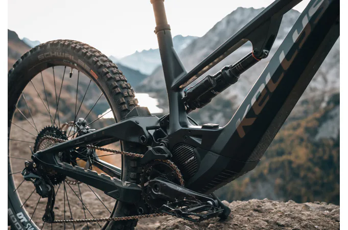 Pohon modelu KELLYS Theos F90 SH tvoří výkonný motor Shimano EP8 o nominálním výkonu 250 W. Díky použití hořčíku pro výrobu bloku motoru je váha pouhých 2,6 kg.