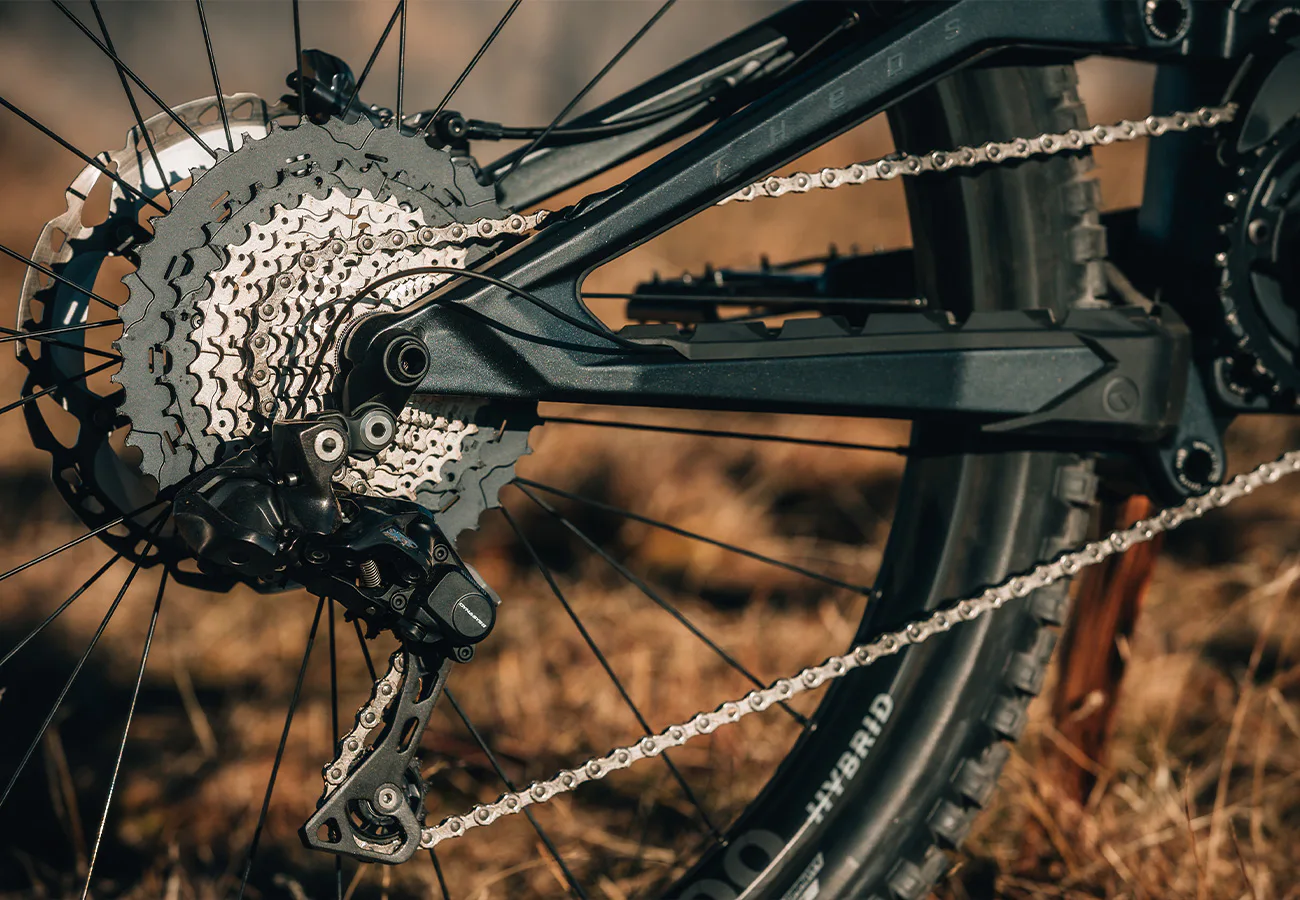 Theos F90 SH dále disponuje 22" rámem, baterií integrovanou v rámu, výkonným motorem SHIMANO EP8 s maximálním točivým momentem 85 Nm a kombinací kol 29" a 27,5" pro lepší ovladatelnost a rychlost.