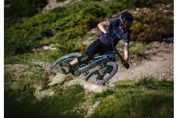 Model disponuje 17" rámem, baterií integrovanou v rámu a výkonným pohonem ve středu rámu. Duralový rám e-FRAME Allmountain nabízí zadní zdvih 150 mm a je osazen 29" koly vpředu a širokými 27,5" koly vzadu.