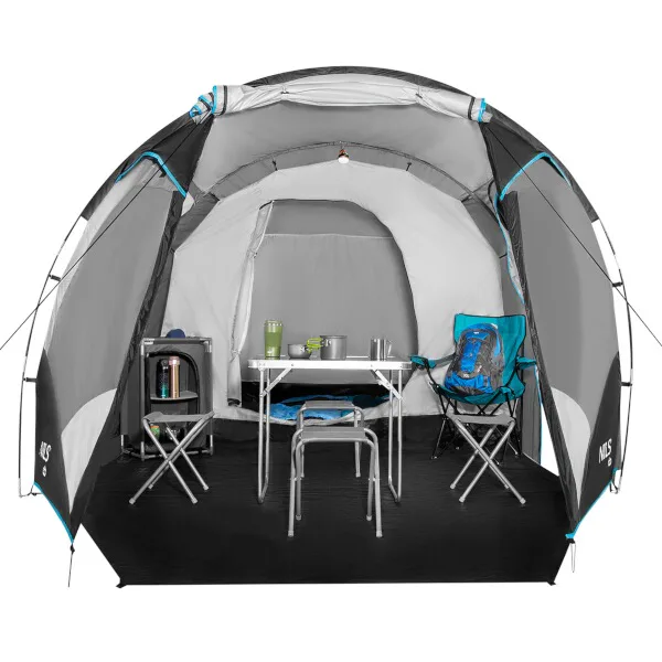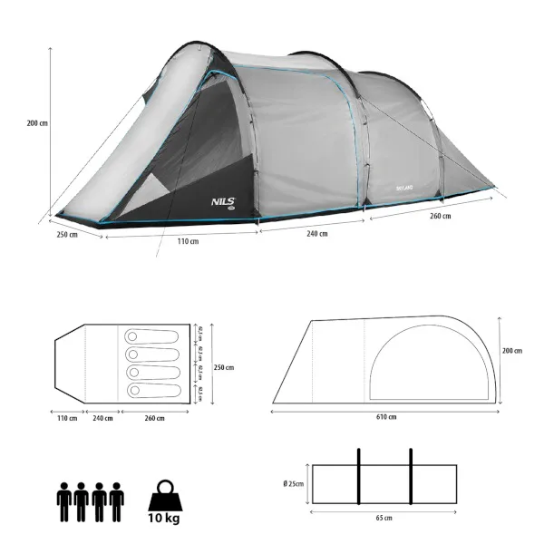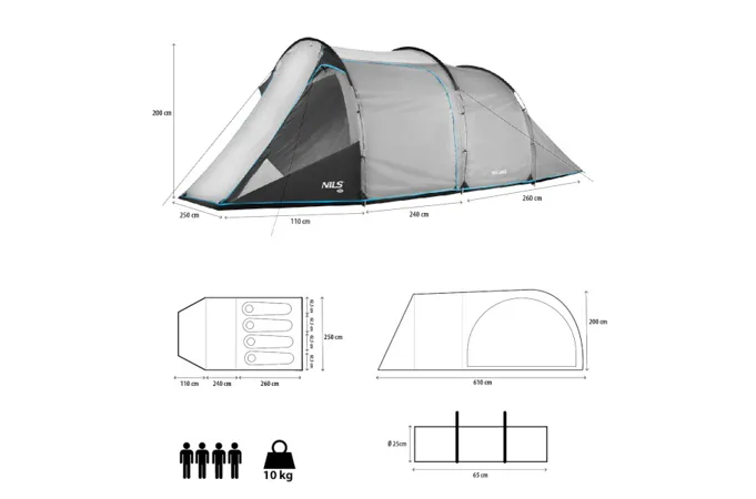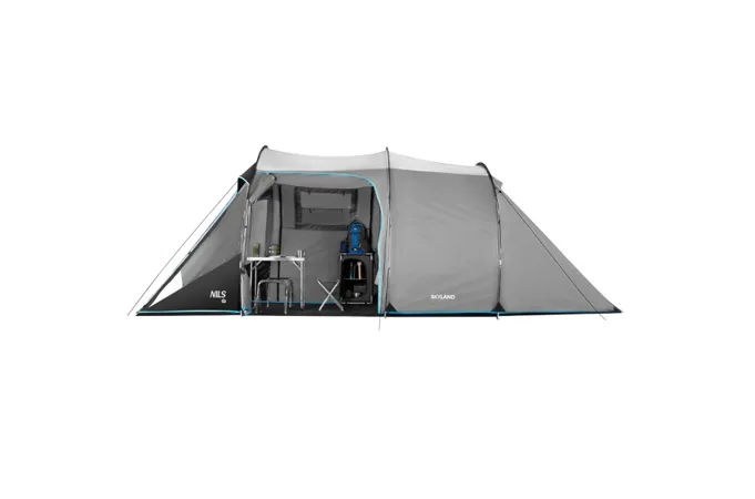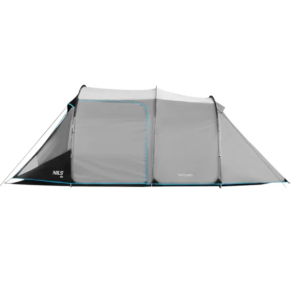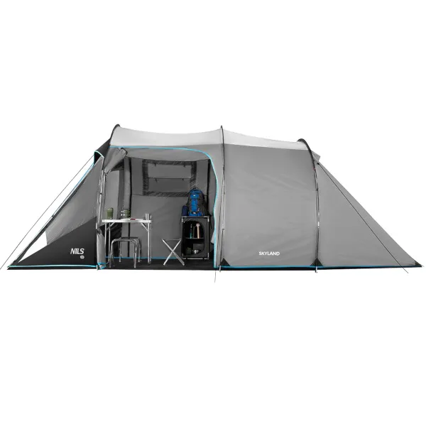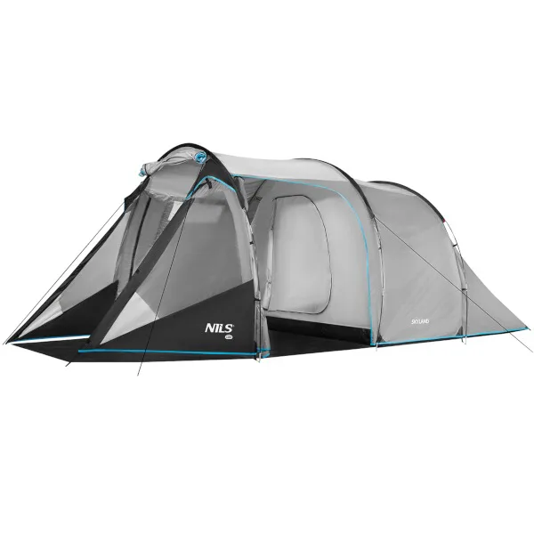 NILS Camp NC6023 Skyland je 4 osobový stan, ktorý oceníte počas teplých letných nocí na záhrade alebo pri pobyte v kempe. Stan Skyland má tunelovú konštrukciu, je dvojplášťový a skladá sa z priestrannej predsiene a jednej spálne.