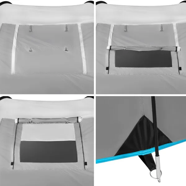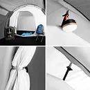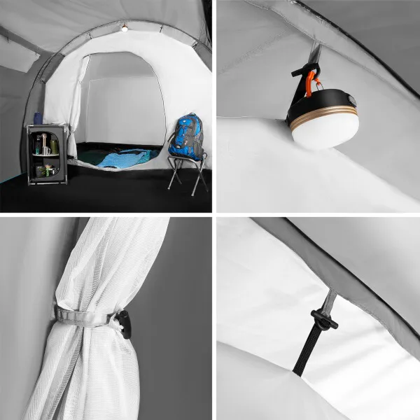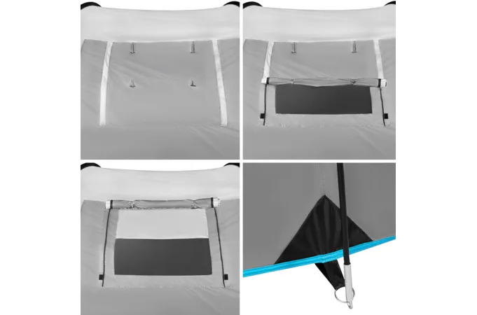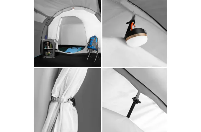 Do stanu sa vstupuje cez predsienku. Čelný vchod sa otvára pomocou dvoch samostatných zipsov a otvorený panel je možné zrolovať a zaistiť pútkami. Bočný vchod je opatrený jedným zipsom a otvorený panel je možné zrolovať a prichytiť k strane. Vchod do spálne je vybavený ako plachtou, tak aj moskytiérou. Vnútorný stan ďalej disponuje vetracím otvorom, ktorý je tiež opatrený moskytiérou, v strede "stropu" je navyše pútko na zavesenie svietidla. Po stranách spálne sa nachádzajú 2 vrecká na odloženie telefónu, peňaženky a pod.