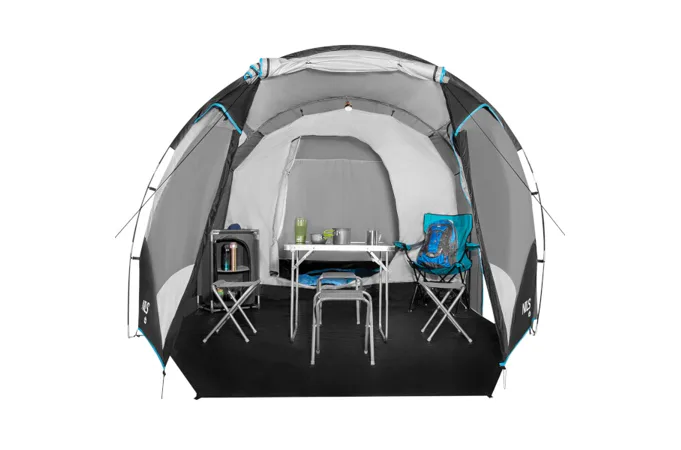 Predsieň s podlahou má rozmery 350 x 250 centimetrov a v najvyššom bode dosahuje výšku 200 centimetrov, takže v nej je možné uskladniť vybavenie, využiť ju ako priestor na spoločnú večeru, alebo napríklad ako herňu, pokiaľ práve prší. Predsieň je opatrená fóliovými oknami, takže v stane je denné svetlo aj pokiaľ ho máte zatvorený.