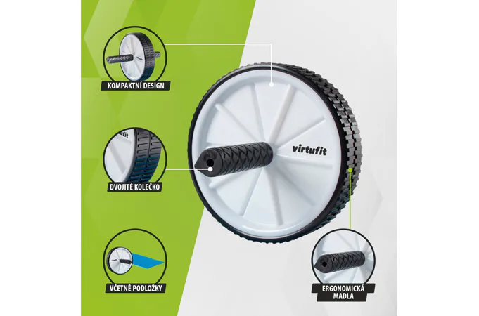 Koliesko na brucho VIRTUFIT AB Roller s podložkou je veľmi efektívny nástroj. Použitím dvojitého kolieska na brucho/rolere sa v skutočnosti menej negatívne zaťažuje chrbát a krk a zameranie sa prenáša tam, kde by malo byť: na brušné svaly. VIRTUFIT AB Roller sa skladá z dvoch ľahko pohyblivých koliesok s ergonomickými rukoväťami, ktoré tiež trénujú nohy, chrbát, ramená a paže. Hlavné zameranie tohto kolieska je však na horné, stredné, dolné a bočné brušné svaly.