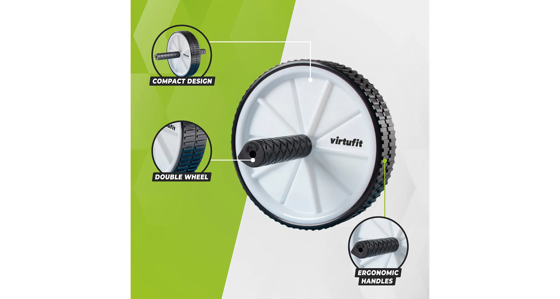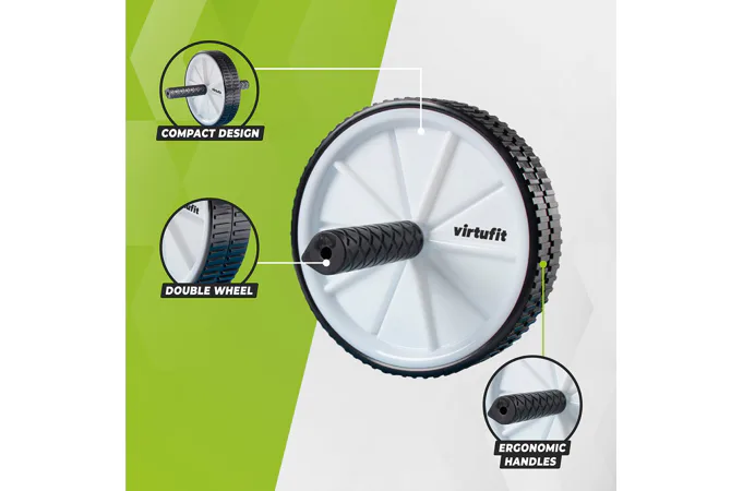 Koliesko na brucho VIRTUFIT AB Roller je veľmi efektívny nástroj. Použitím dvojitého kolieska na brucho/rolere sa v skutočnosti menej negatívne zaťažuje chrbát a krk a zameranie sa prenáša tam, kde by malo byť: na brušné svaly. VIRTUFIT AB Roller sa skladá z dvoch ľahko pohyblivých koliesok s ergonomickými rukoväťami, ktoré tiež trénujú nohy, chrbát, ramená a paže. Hlavné zameranie tohto kolieska je však na horné, stredné, dolné a bočné brušné svaly.