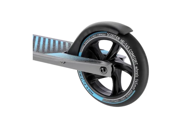Riadidlá majú šírku 46 centimetrov a rukoväte sú opatrené gumovými gripmi, táto kombinácia zaručuje pohodlný úchyt a istotu v riadení aj pri vysokých rýchlostiach, ktorých HD145 dosahuje vďaka polyuretánovým kolieskam s priemerom 145 mm a ložiskám ABEC 7. Kolieska sú opatrené aj blatníkmi zastihne napríklad dažďová prehánka. Zadný blatník zároveň slúži ako nožná brzda, tá umožňuje rýchle zastavenie a tým zvyšuje bezpečnosť kolobežky.
