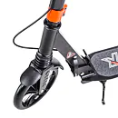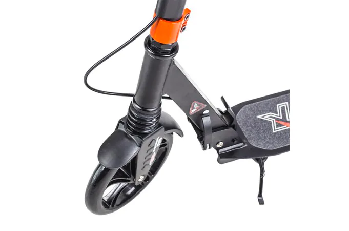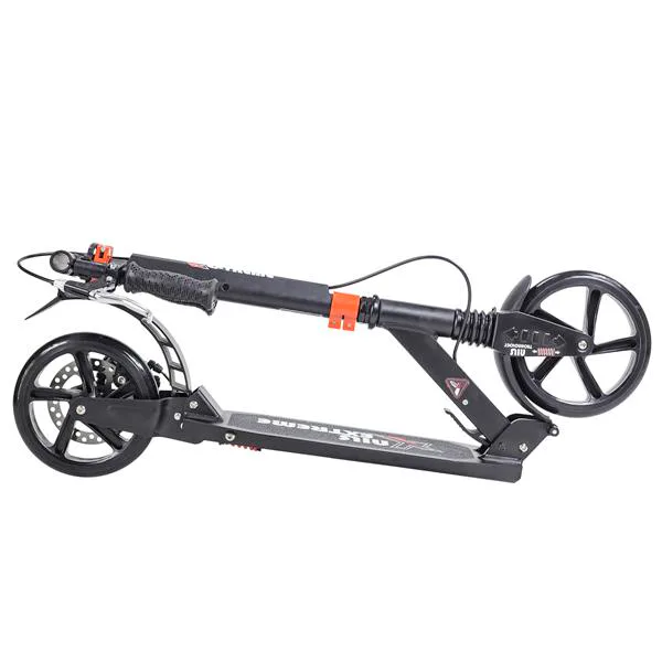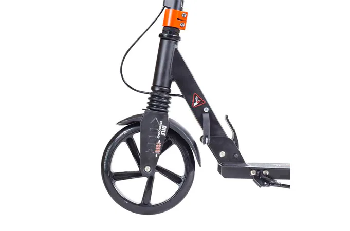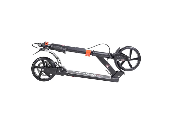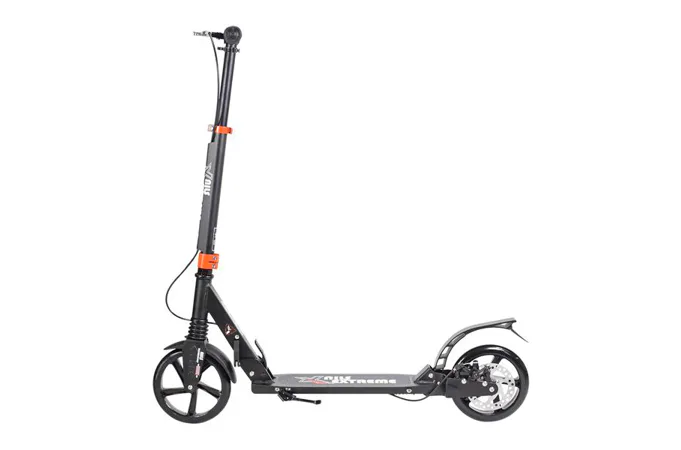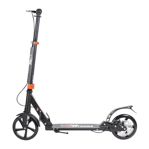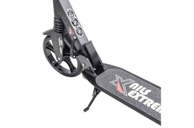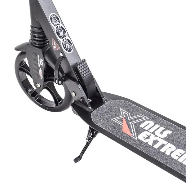 Skladacia kolobežka značky NILS EXTREME HA200T je kolobežka určená pre celú rodinu. Charakteristickou vlastnosťou kolobežky sú dva tlmiče – predný zvislý a zadný vodorovný, zaisťujúci väčší komfort počas jazdy, minimalizujú drncanie a pohlcujú otrasy. Vďaka tomu sa produkt dobre osvedčí pri prechádzaní nerovných povrchov. Široký a dlhý nášľap je pokrytý protišmykovým gripom zaisťujúcim správnu priľnavosť topánky. Nastaviteľné riadidlá (až do výšky 106 cm) umožňujú prispôsobiť kolobežku k výške dieťaťa alebo tiež zaisťujú pohodlnú jazdu dospelým osobám. Novo je tento model vybavený aj kotúčovou brzdou.