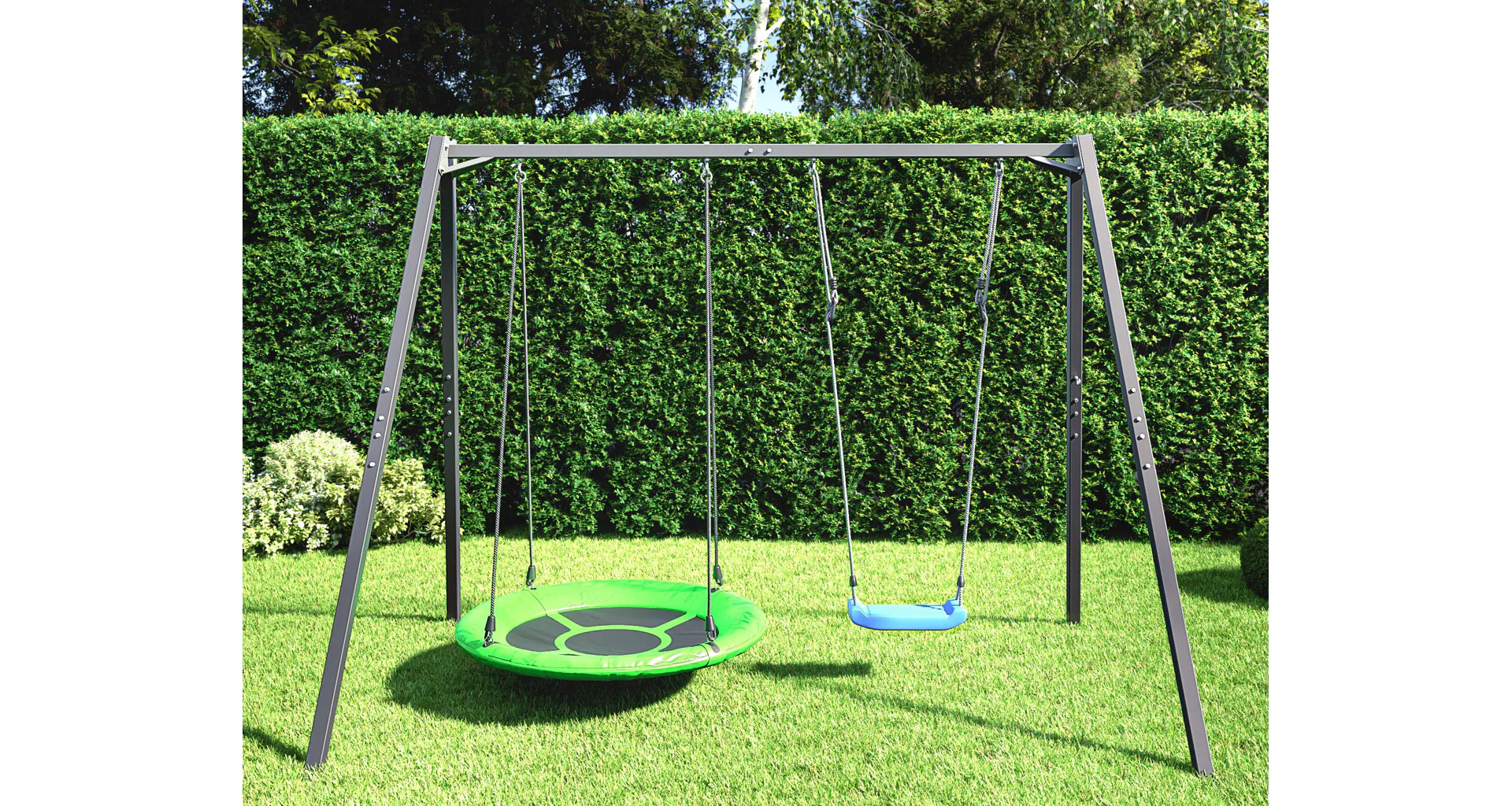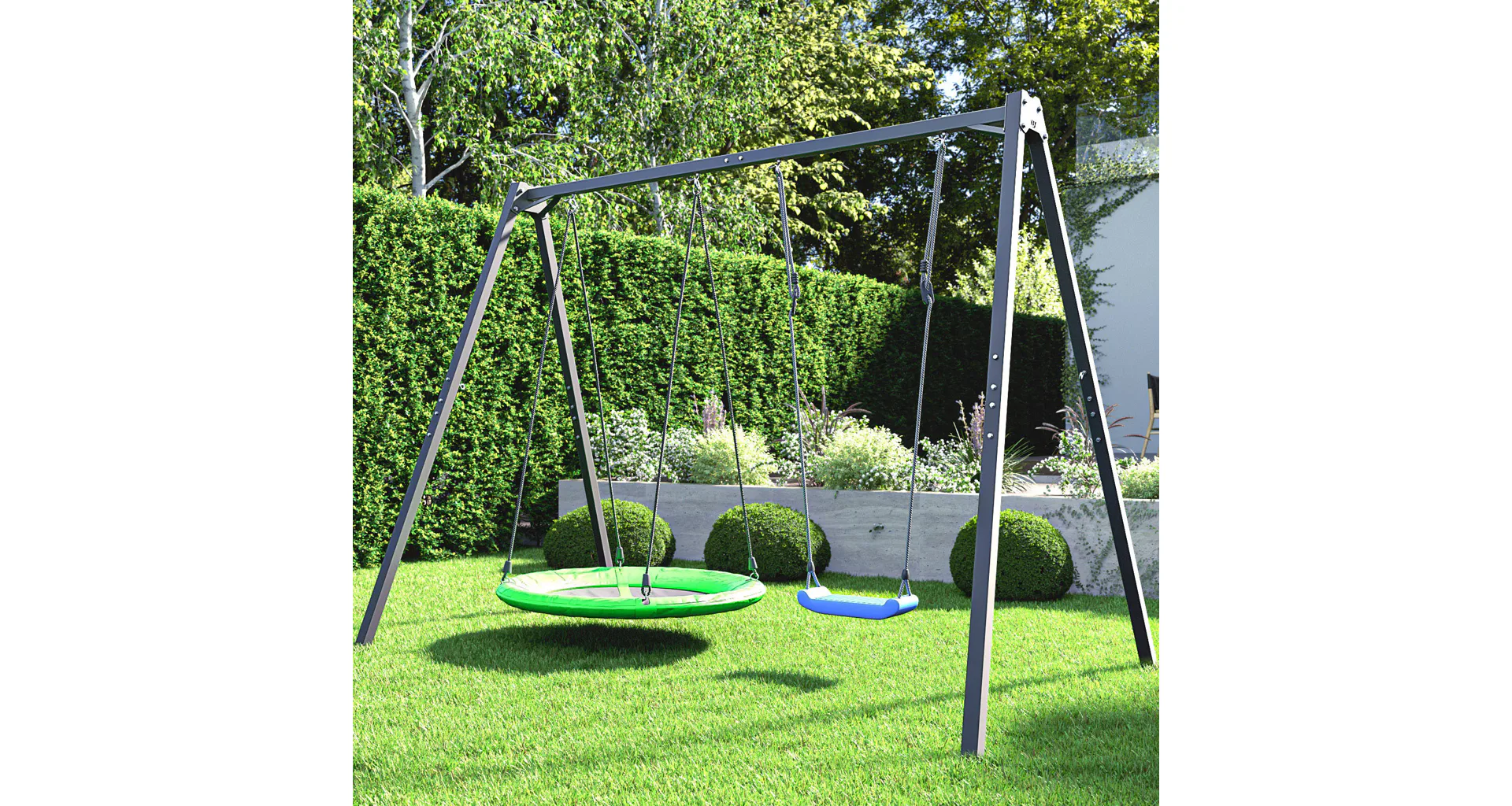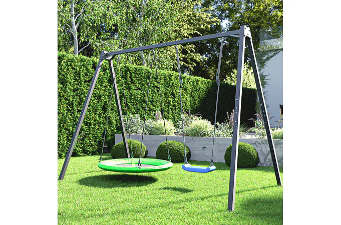 Či už vaše dieťa sníva o tradičnej hojdačke, hojdacom kruhu, ako je "bocianie hniezdo", hojdacej sieti alebo závesnej lavičke - každé z týchto príslušenstiev možno namontovať na oceľový rám MARBO Sport.