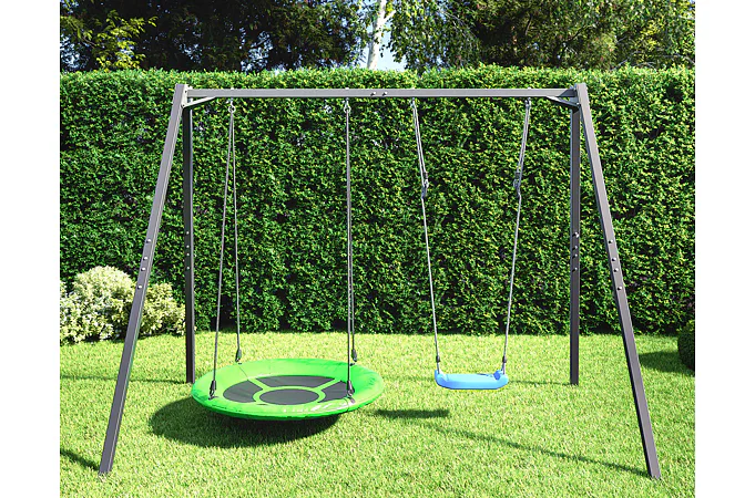 Plánujete kúpiť detskú hojdačku a nemáte ju kam zavesiť? Hľadáte spoľahlivé riešenie na zaistenie bezpečnej hry vašich detí? S oceľovým 2-miestnym rámom MARBO Sport MO-002 budete môcť premeniť svoju záhradu na detské ihrisko.
