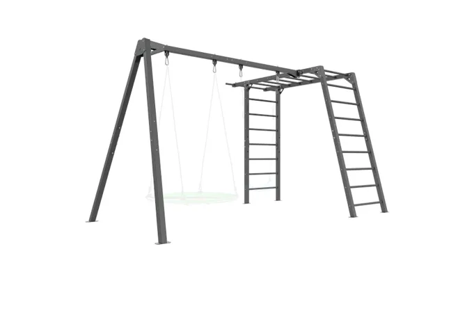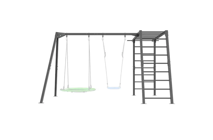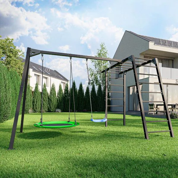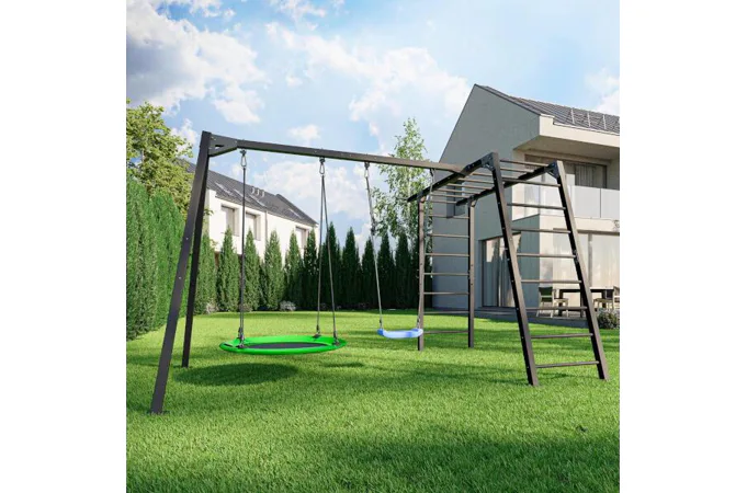 Funkčná záhradná zostava od MARBO Sport MO-Z7 skladajúca sa z konštrukcie pre 2 hojdačka a gymnastických rebrín, ktoré deti využijú aj ako preliezačku. Zostava je ideálna pre tréning, alebo rodinnú zábavu v súkromí vlastnej záhrady.