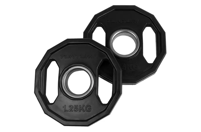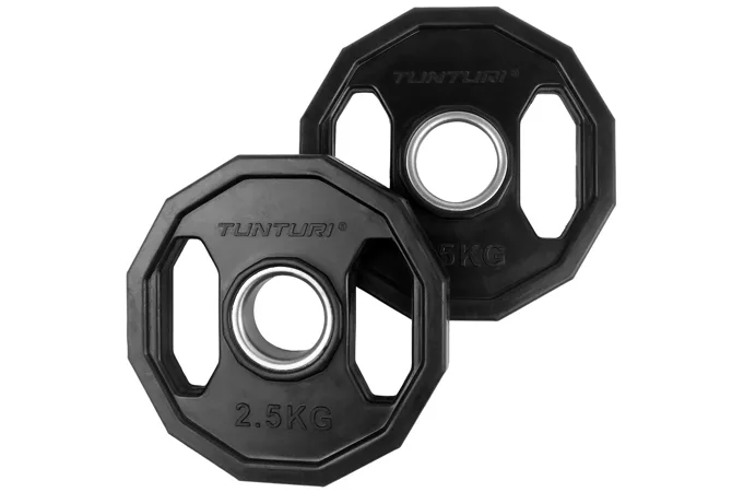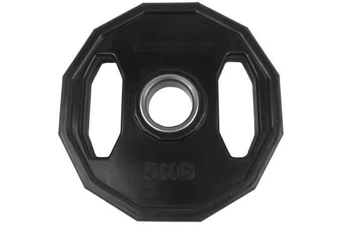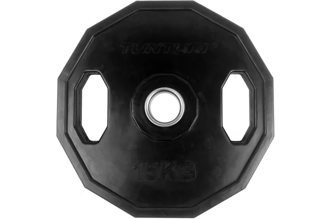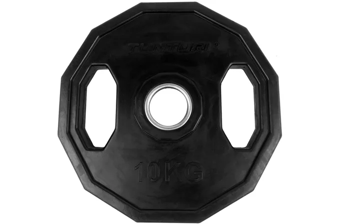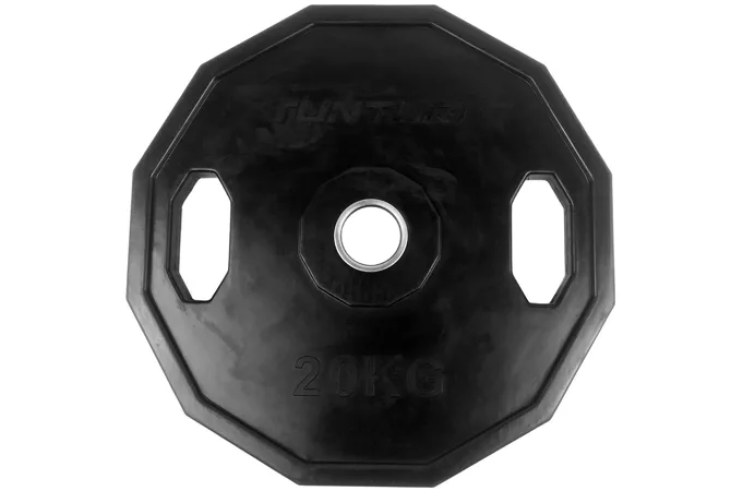 Kotúč olympijský pogumovaný hranatý TUNTURI je kvalitný liatinový kotúč s dodatočnou ochranou a hranatým prevedením. Povrch kotúča je pokrytý vrstvou kvalitnej gumy s vysokou odolnosťou proti nárazom a oderom. Disponuje dvoma úchopmi po stranách a je možné ho tak využiť aj ako činku, prípadne ako záťaž pri zhyboch pri použití fitness pásu s reťazou. Rovnako sa vďaka týmto úchopom s kotúčom oveľa lepšie manipuluje. Vďaka týmto vlastnostiam sú tieto kotúče vhodnou voľbou do domácich i komerčných posilňovní.