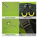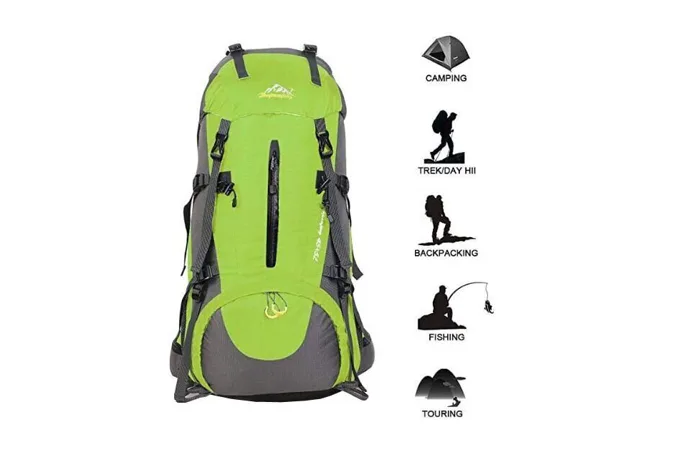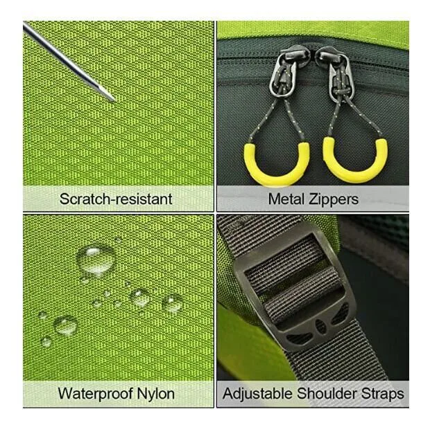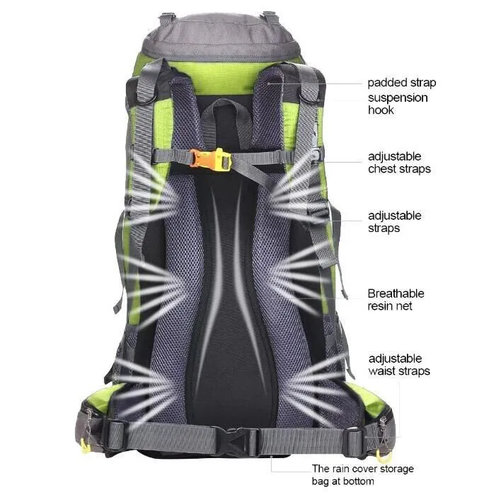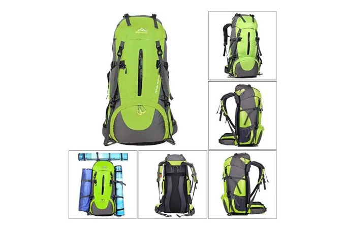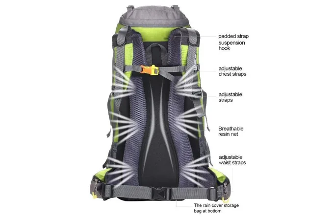 Vrecká a vybavenosť -1 hlavný priestor rozdelený do dvoch priehradok - 1 spodné vrecko na zips s rozpínateľným priestorom - 1 predné vrecko na zips - 2 vrchné vrecká - 2 otvorené bočné vrecká - Integrovaný nepremokavý vak - Systém popruhov a elastických ramenné popruhy s hrudnou prackou a píšťalkou - Polstrovaný bedrový pás s prackou a vreckami na zips